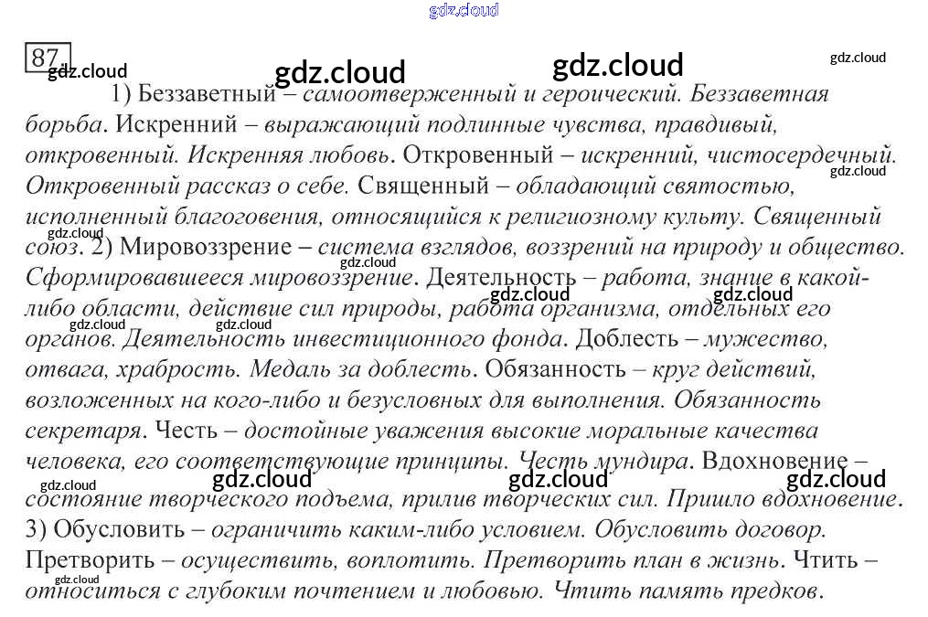 Ответ на задание 87 Учебник Русский язык за 10, 11 (десятый, одиннадцатый) класс Греков, Крючков, Чешко 2016