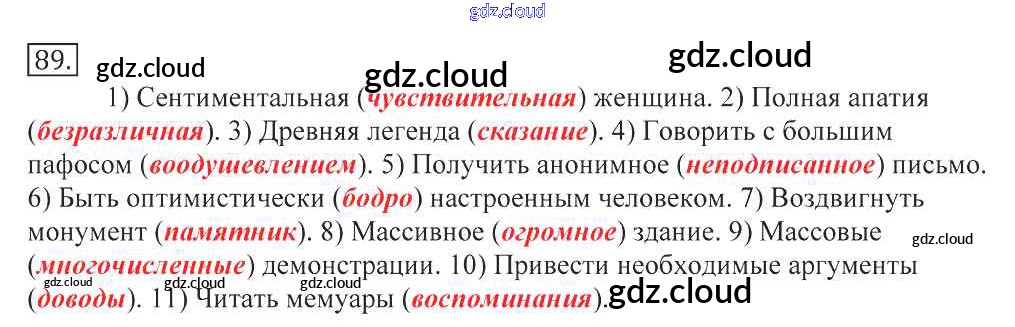 Ответ на задание 89 Учебник Русский язык за 10, 11 (десятый, одиннадцатый) класс Греков, Крючков, Чешко 2016