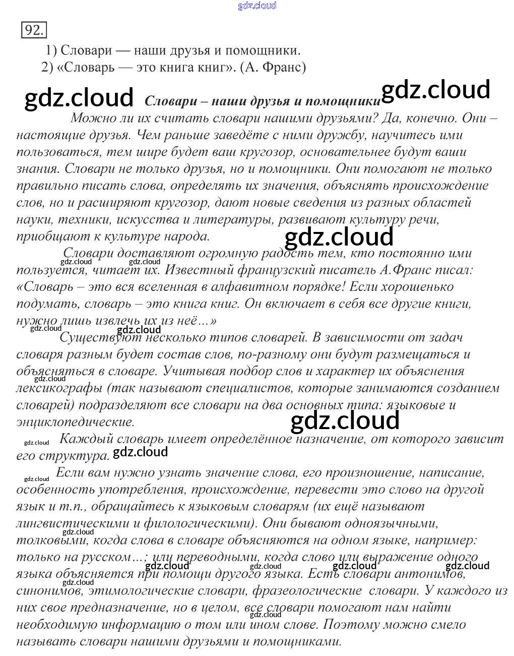 Ответ на задание 92 Учебник Русский язык за 10, 11 (десятый, одиннадцатый) класс Греков, Крючков, Чешко 2016 онлайн и без номера телефона.