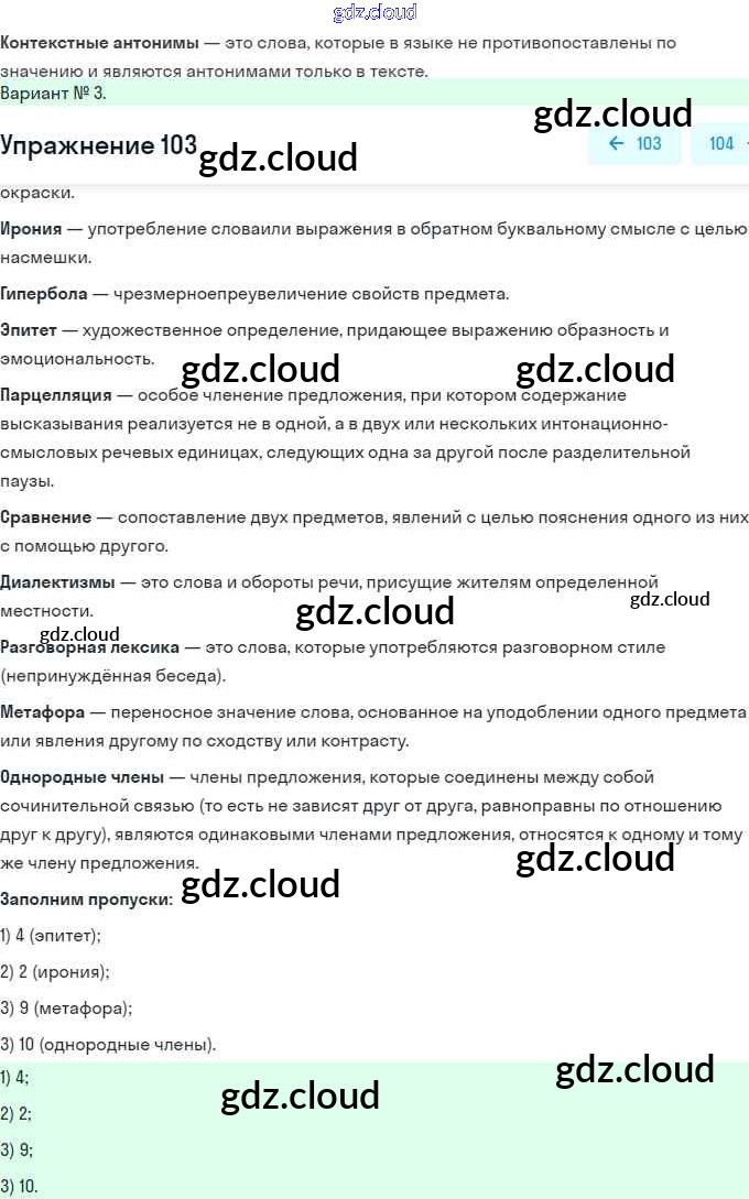 Ответ на задание 103 Учебник Русский язык за 11 (одиннадцатый) класс Гусарова Базовый и углубленный уровень 2022