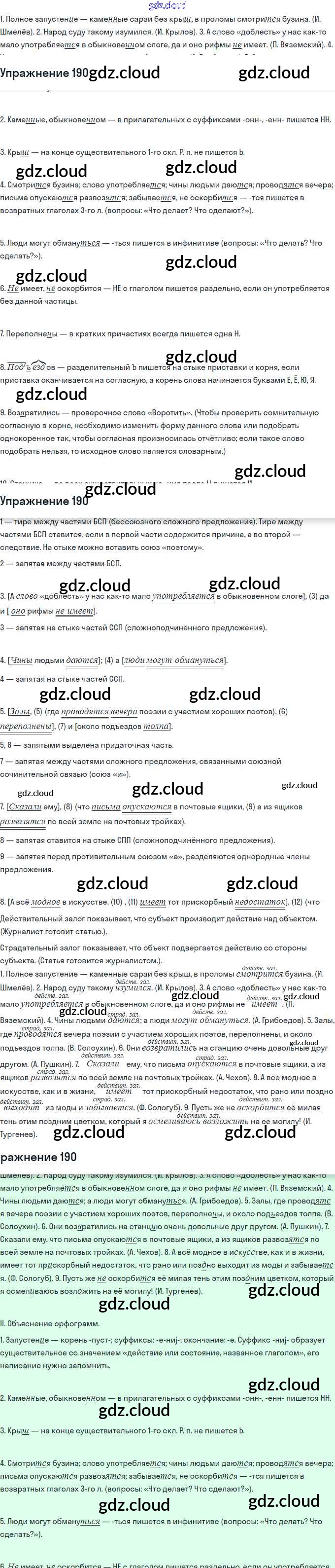 Ответ на задание 190 Учебник Русский язык за 11 (одиннадцатый) класс Гусарова Базовый и углубленный уровень 2022