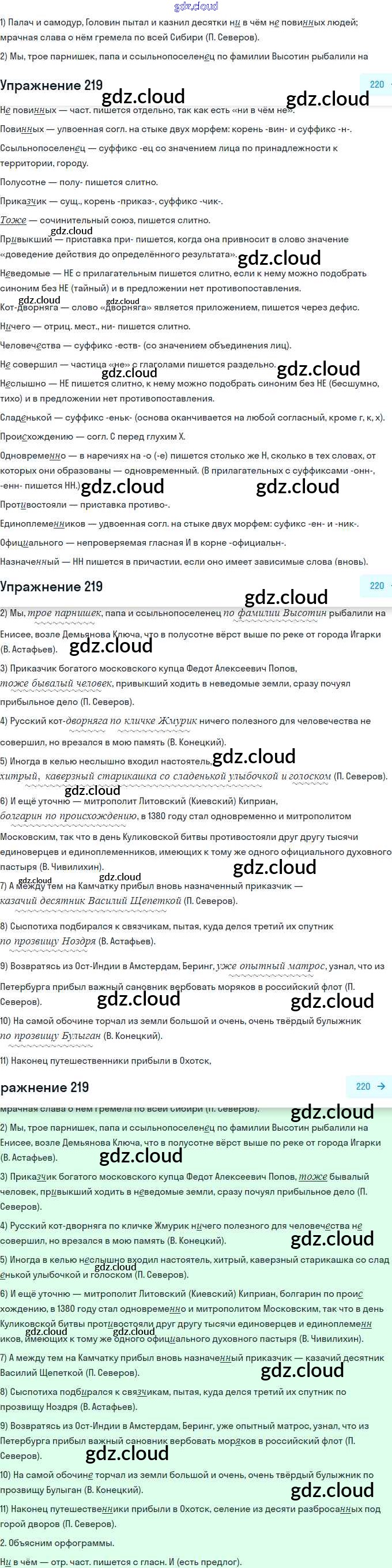 Ответ на задание 219 Учебник Русский язык за 11 (одиннадцатый) класс Гусарова Базовый и углубленный уровень 2022