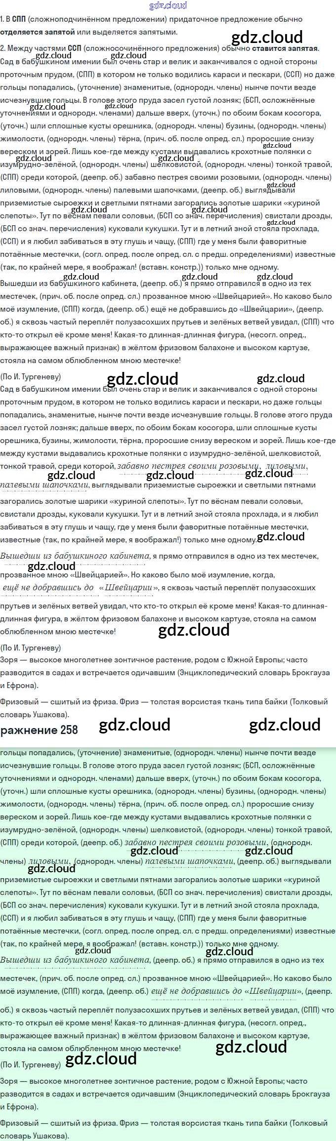 Ответ на задание 258 Учебник Русский язык за 11 (одиннадцатый) класс Гусарова Базовый и углубленный уровень 2022