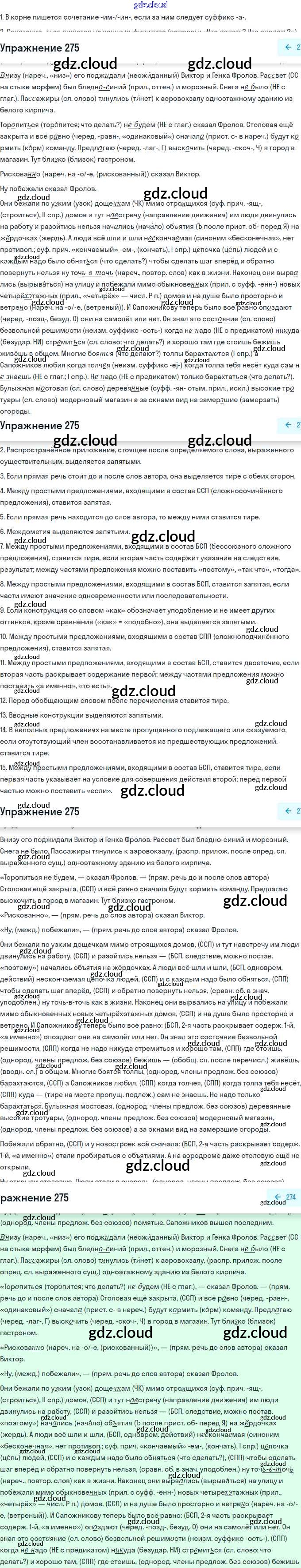 Ответ на задание 275 Учебник Русский язык за 11 (одиннадцатый) класс Гусарова Базовый и углубленный уровень 2022