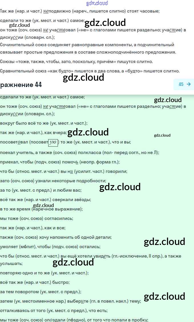 Ответ на задание 44 Учебник Русский язык за 11 (одиннадцатый) класс Гусарова Базовый и углубленный уровень 2022