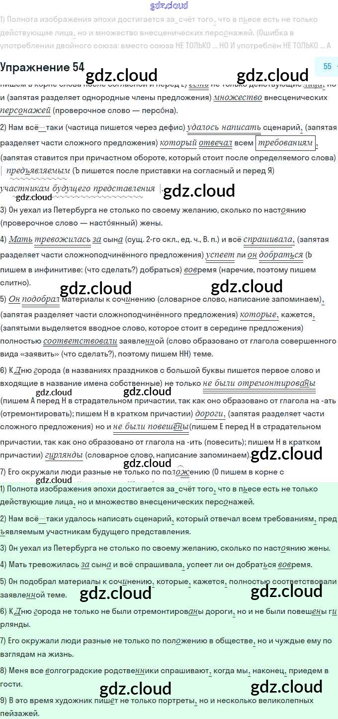 Ответ на задание 54 Учебник Русский язык за 11 (одиннадцатый) класс Гусарова Базовый и углубленный уровень 2022