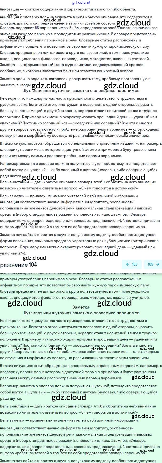 Ответ на задание 104 Учебник Русский язык за 11 (одиннадцатый) класс Львова, Львов Базовый и углубленный уровень 2016