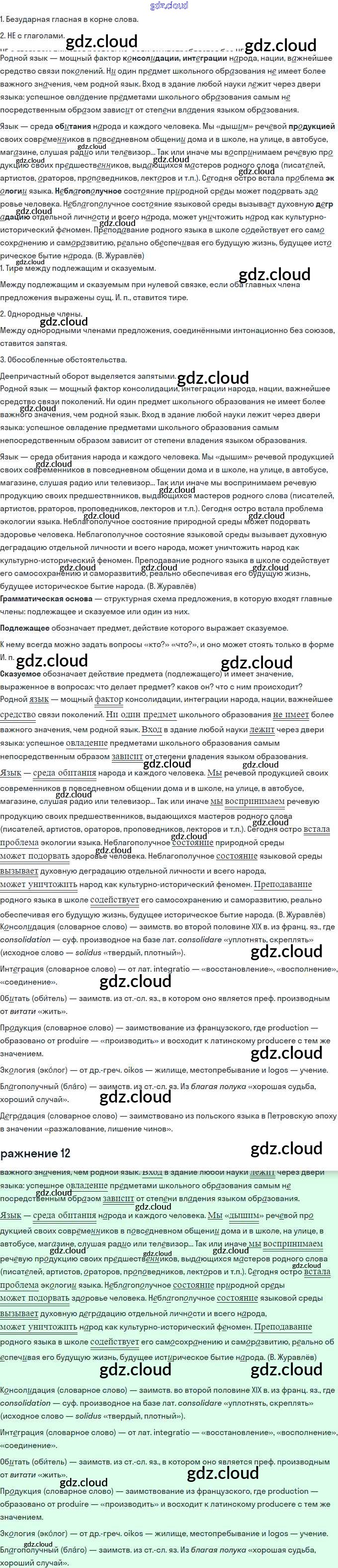 Ответ на задание 12 Учебник Русский язык за 11 (одиннадцатый) класс Львова, Львов Базовый и углубленный уровень 2016