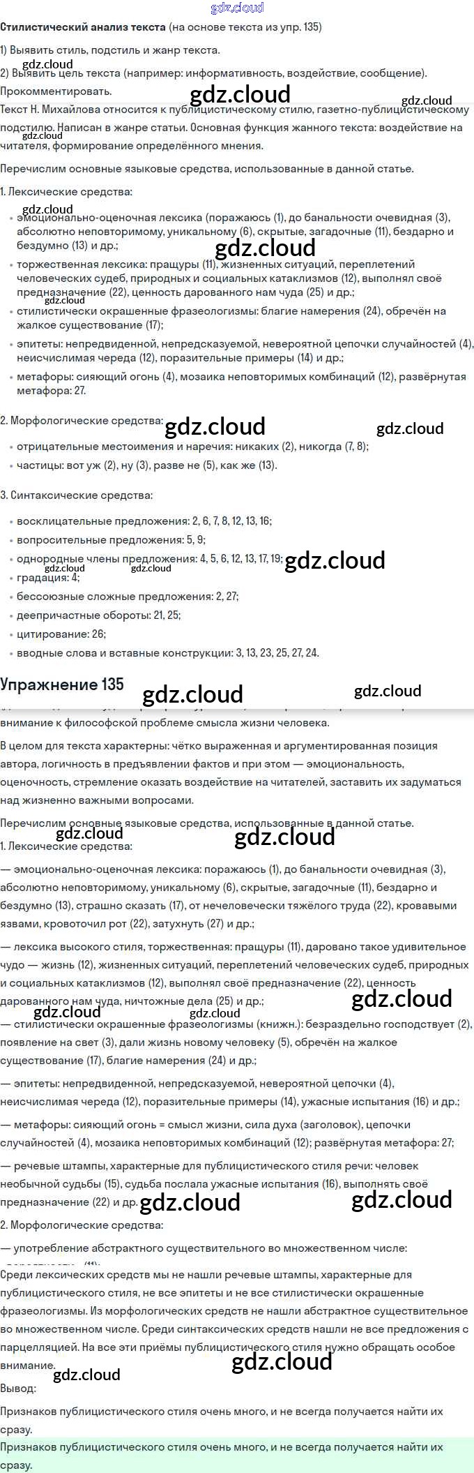 Ответ на задание 135 Учебник Русский язык за 11 (одиннадцатый) класс Львова, Львов Базовый и углубленный уровень 2016
