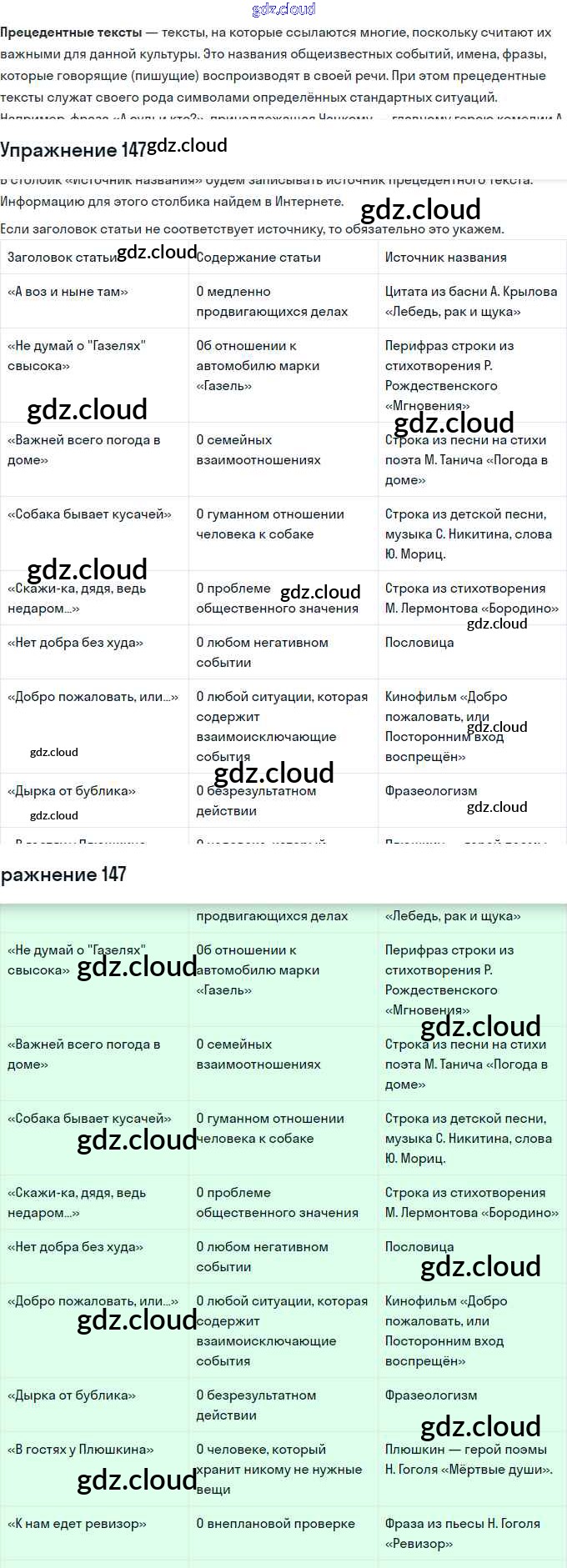 Ответ на задание 147 Учебник Русский язык за 11 (одиннадцатый) класс Львова, Львов Базовый и углубленный уровень 2016