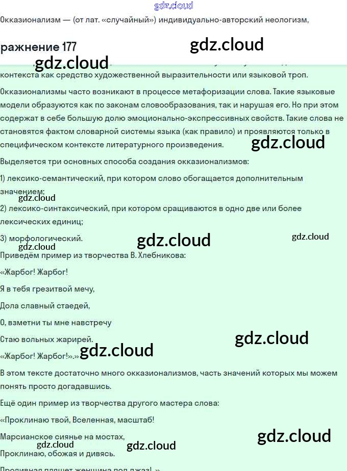 Ответ на задание 177 Учебник Русский язык за 11 (одиннадцатый) класс Львова, Львов Базовый и углубленный уровень 2016