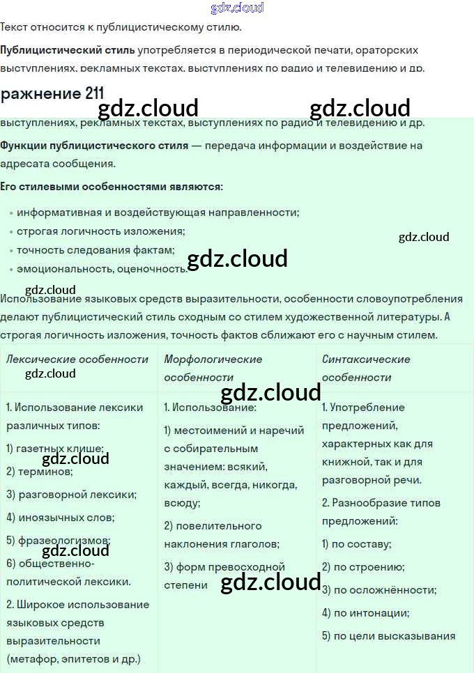 Ответ на задание 211 Учебник Русский язык за 11 (одиннадцатый) класс Львова, Львов Базовый и углубленный уровень 2016