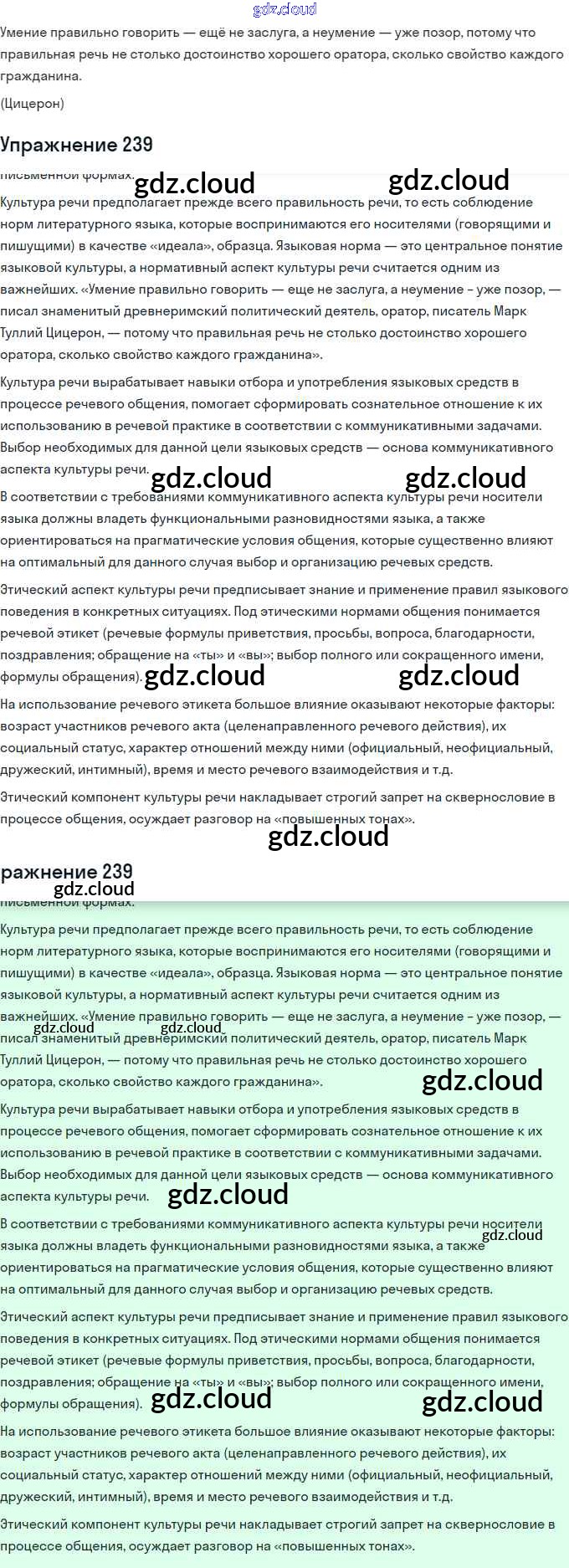 Ответ на задание 239 Учебник Русский язык за 11 (одиннадцатый) класс Львова, Львов Базовый и углубленный уровень 2016