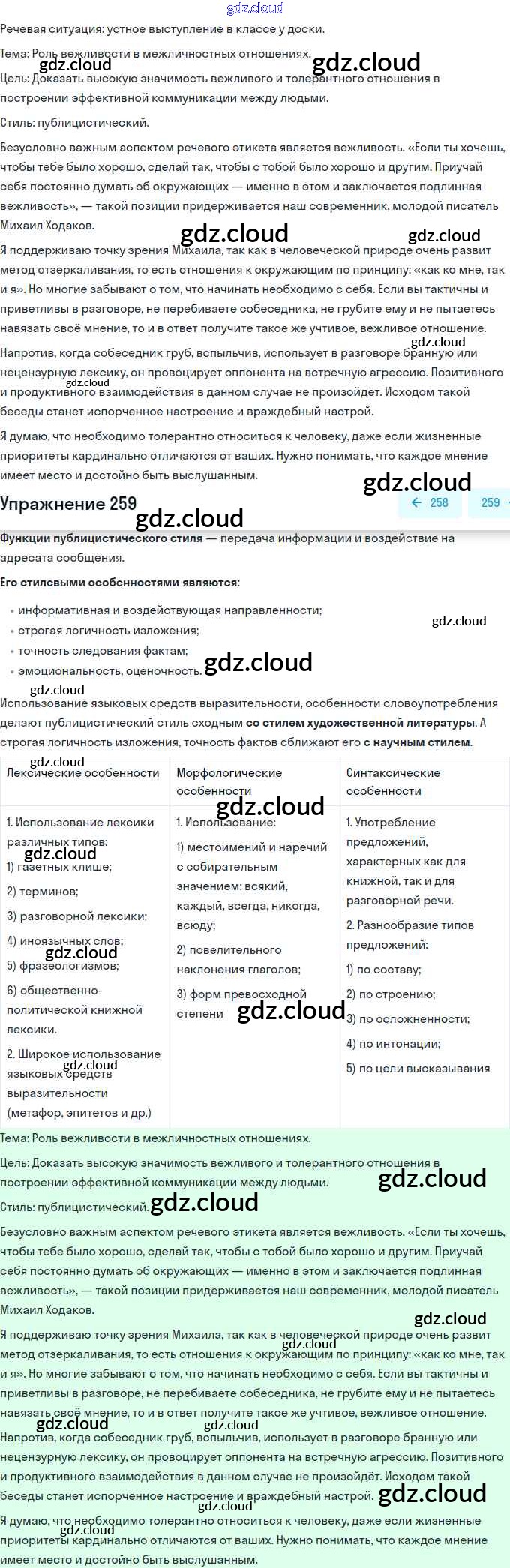 Ответ на задание 259 Учебник Русский язык за 11 (одиннадцатый) класс Львова, Львов Базовый и углубленный уровень 2016
