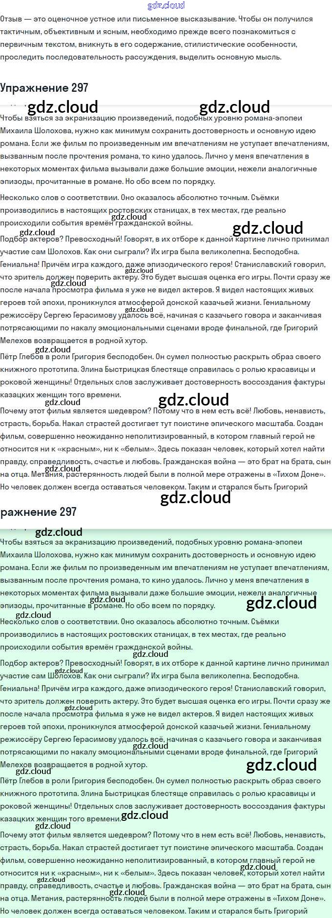 Ответ на задание 297 Учебник Русский язык за 11 (одиннадцатый) класс Львова, Львов Базовый и углубленный уровень 2016