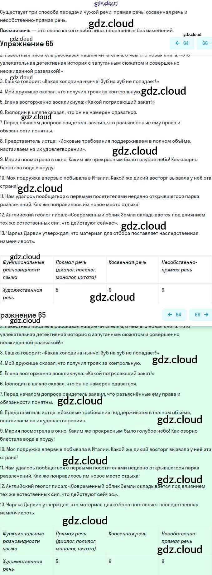 Ответ на задание 65 Учебник Русский язык за 11 (одиннадцатый) класс Львова, Львов Базовый и углубленный уровень 2016