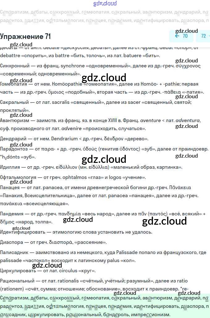 Ответ на задание 71 Учебник Русский язык за 11 (одиннадцатый) класс Львова, Львов Базовый и углубленный уровень 2016