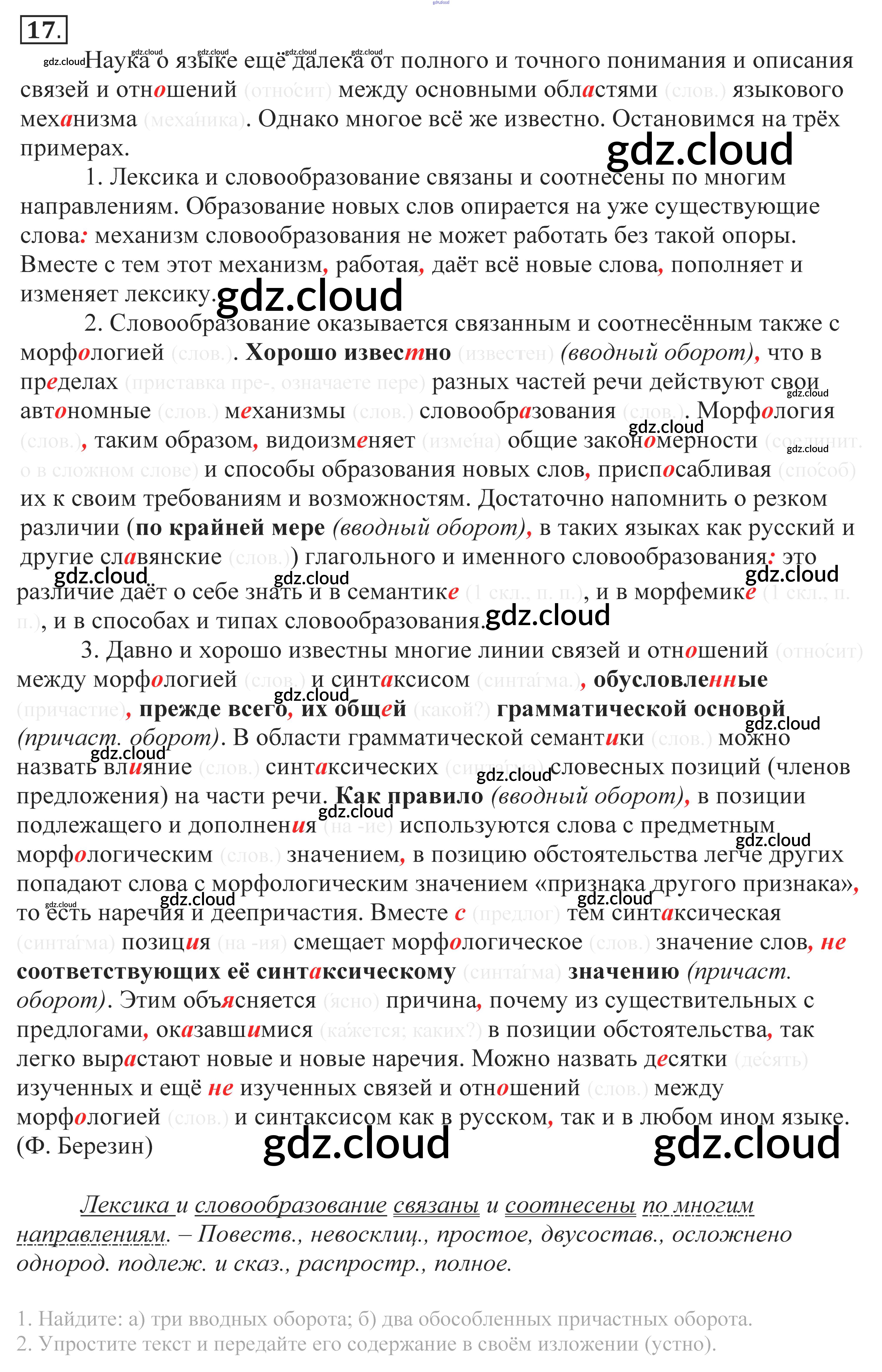 Ответ на задание 17 Учебник Русский язык за 10, 11 (десятый, одиннадцатый) класс Власенков, Рыбченкова Базовый уровень 2014