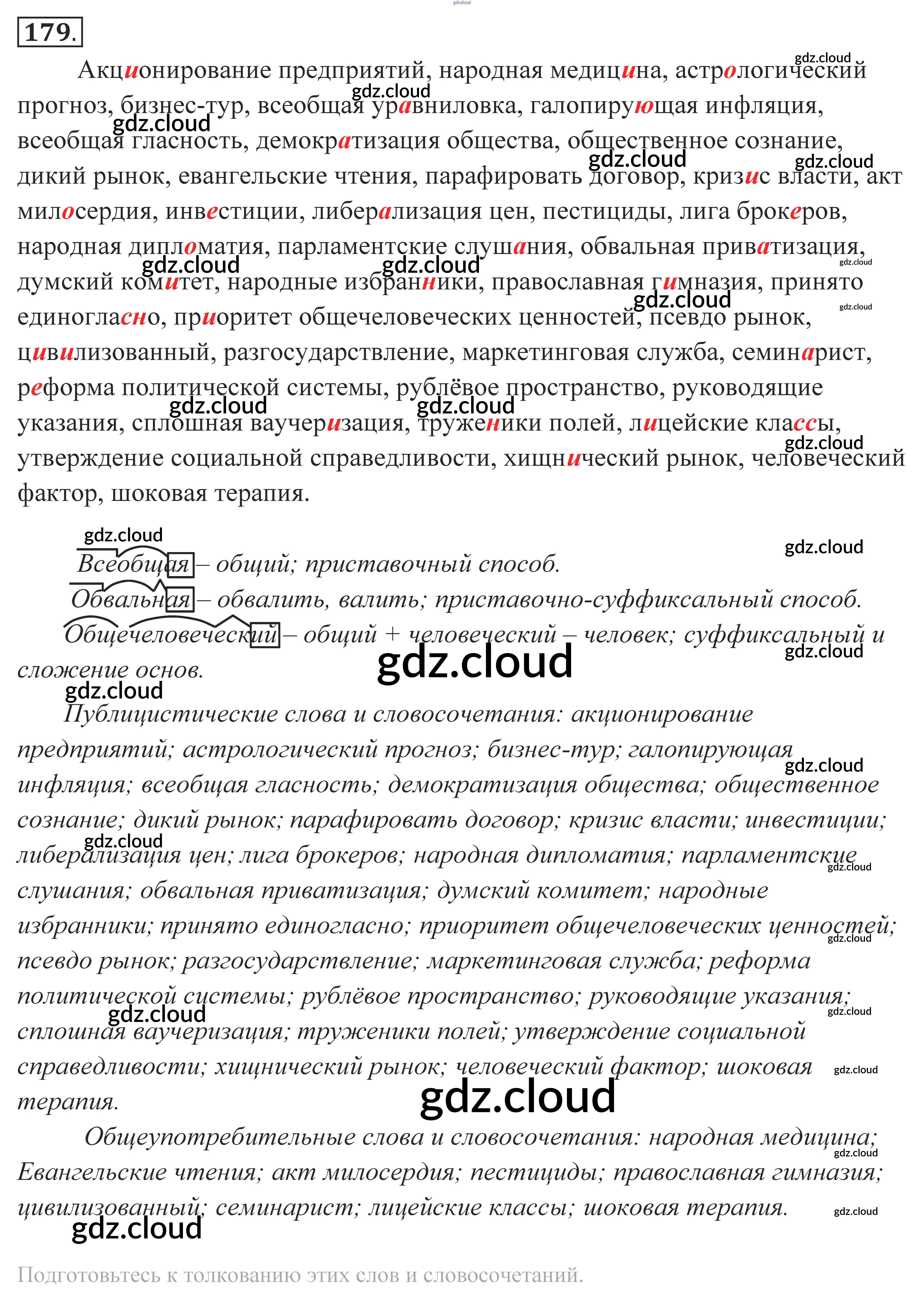 Ответ на задание 179 Учебник Русский язык за 10, 11 (десятый, одиннадцатый) класс Власенков, Рыбченкова Базовый уровень 2014