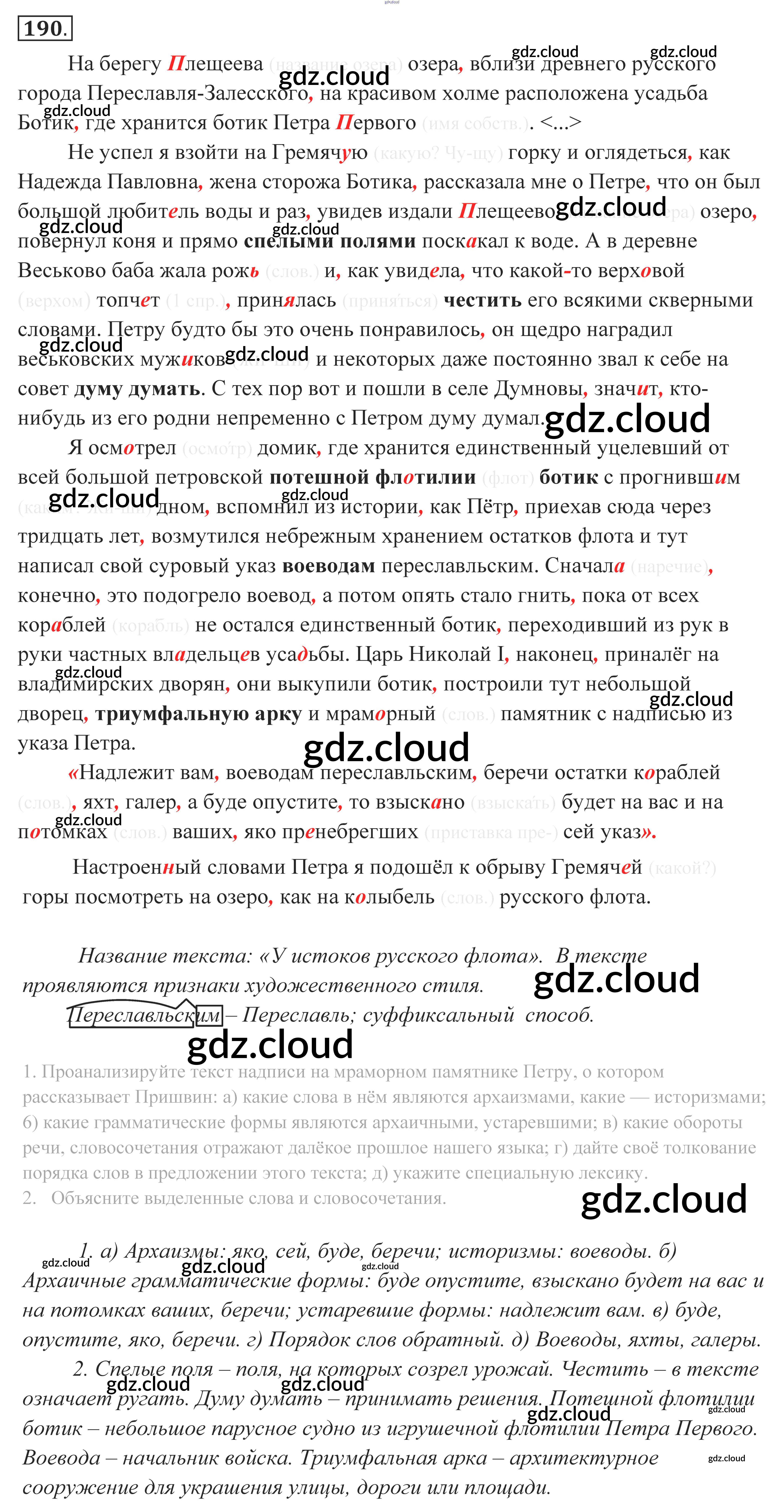 Ответ на задание 190 Учебник Русский язык за 10, 11 (десятый, одиннадцатый) класс Власенков, Рыбченкова Базовый уровень 2014