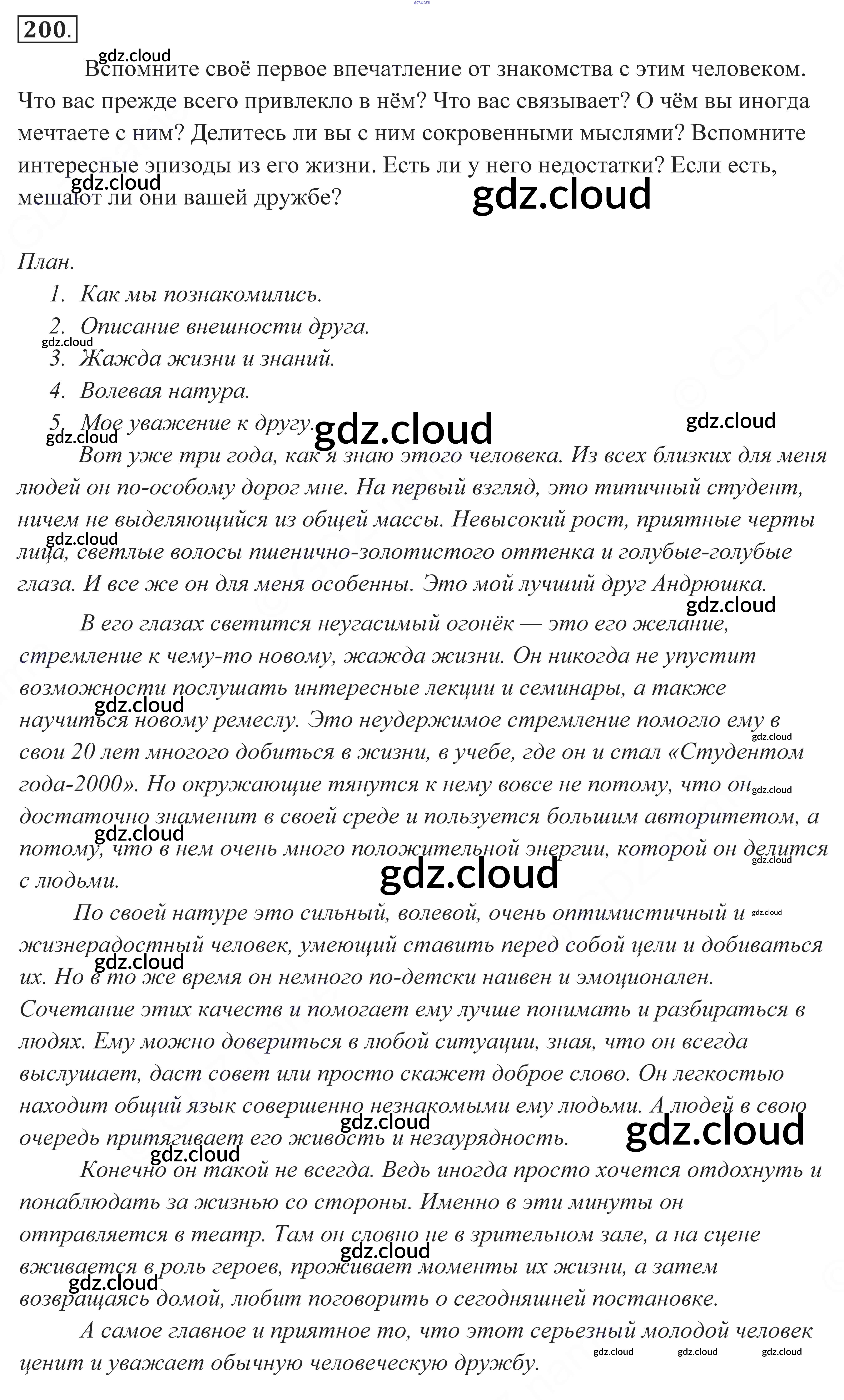 Ответ на задание 200 Учебник Русский язык за 10, 11 (десятый, одиннадцатый) класс Власенков, Рыбченкова Базовый уровень 2014