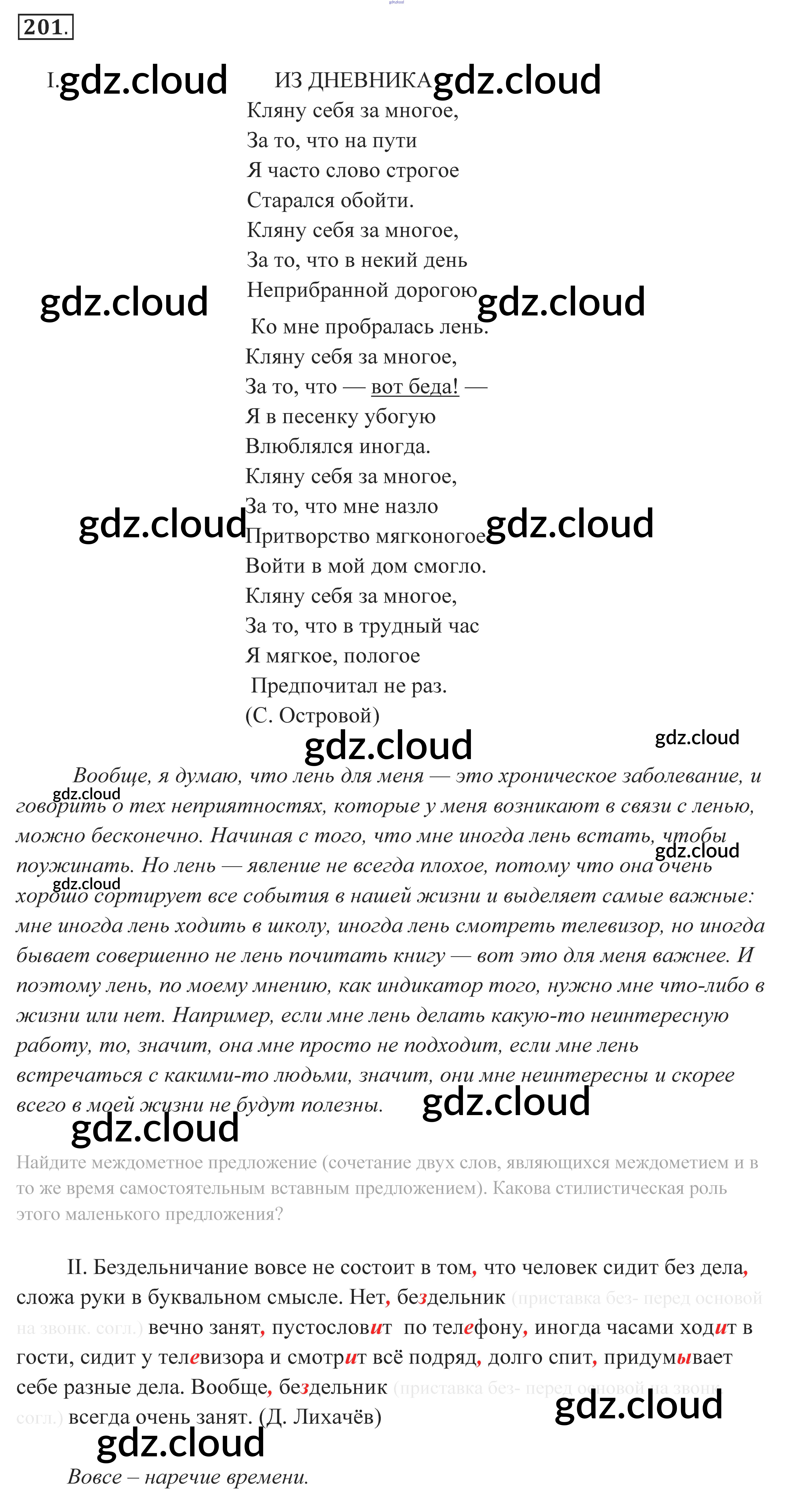 Ответ на задание 201 Учебник Русский язык за 10, 11 (десятый, одиннадцатый) класс Власенков, Рыбченкова Базовый уровень 2014