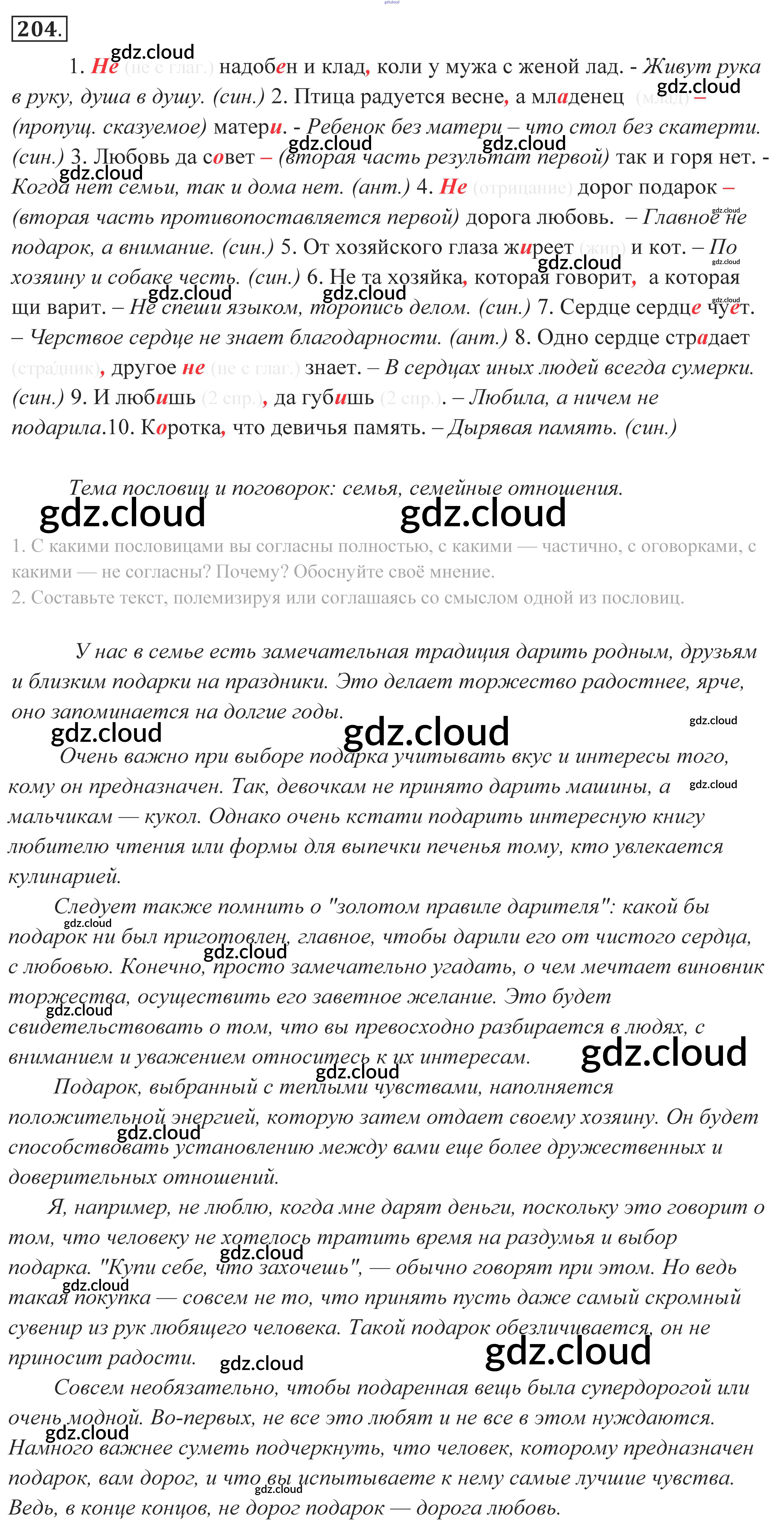 Ответ на задание 204 Учебник Русский язык за 10, 11 (десятый, одиннадцатый) класс Власенков, Рыбченкова Базовый уровень 2014
