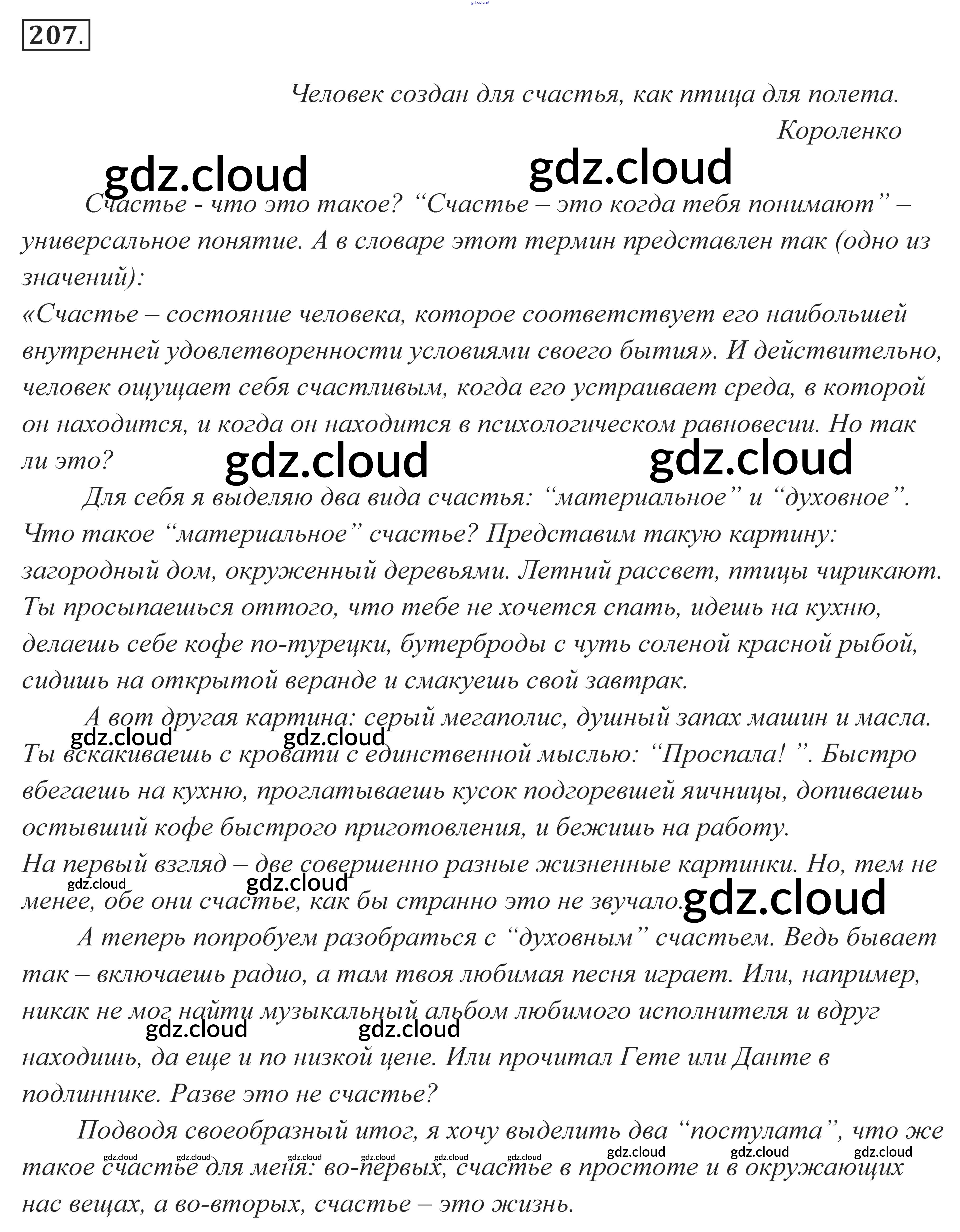 Ответ на задание 207 Учебник Русский язык за 10, 11 (десятый, одиннадцатый) класс Власенков, Рыбченкова Базовый уровень 2014