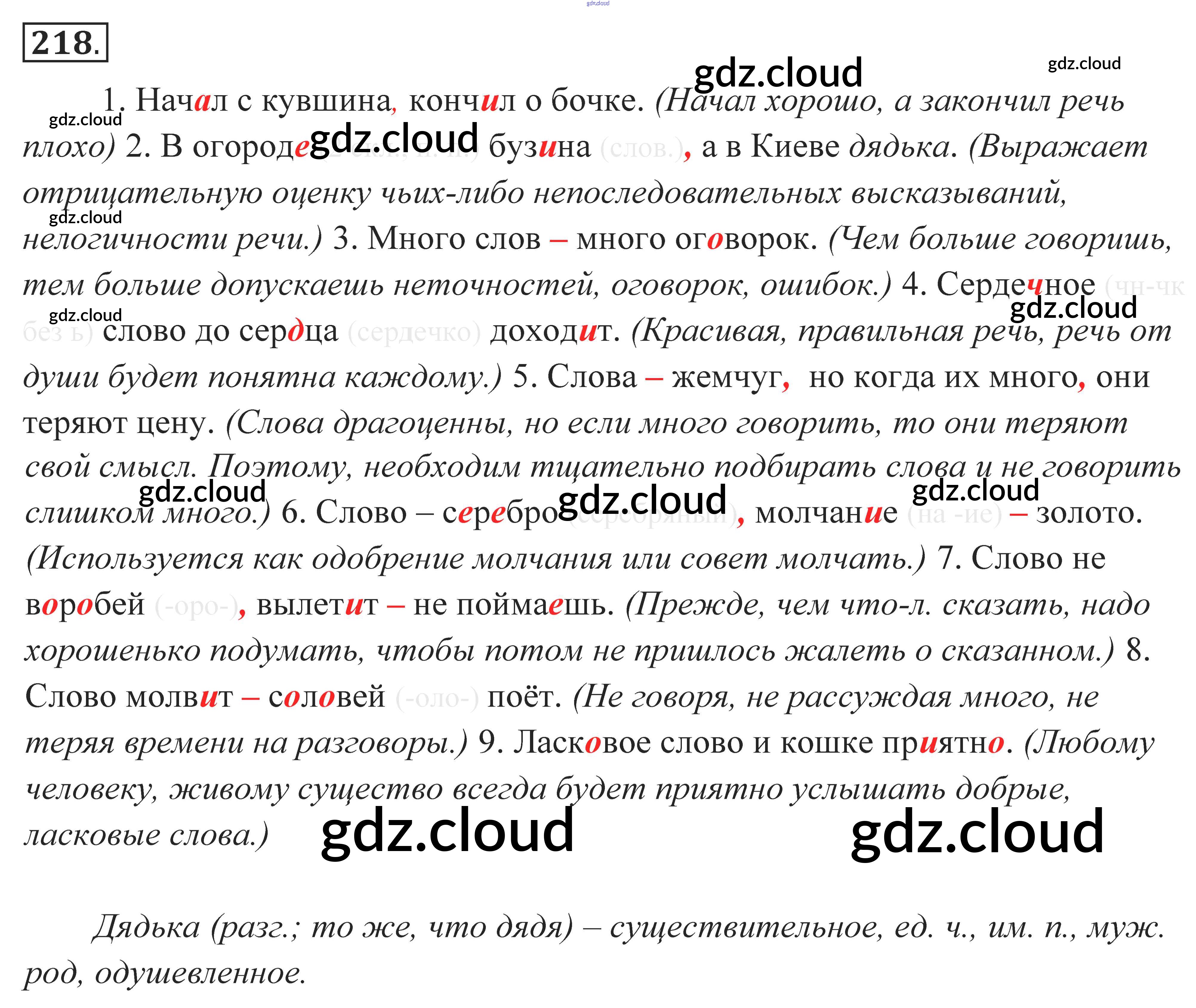 Ответ на задание 218 Учебник Русский язык за 10, 11 (десятый, одиннадцатый) класс Власенков, Рыбченкова Базовый уровень 2014