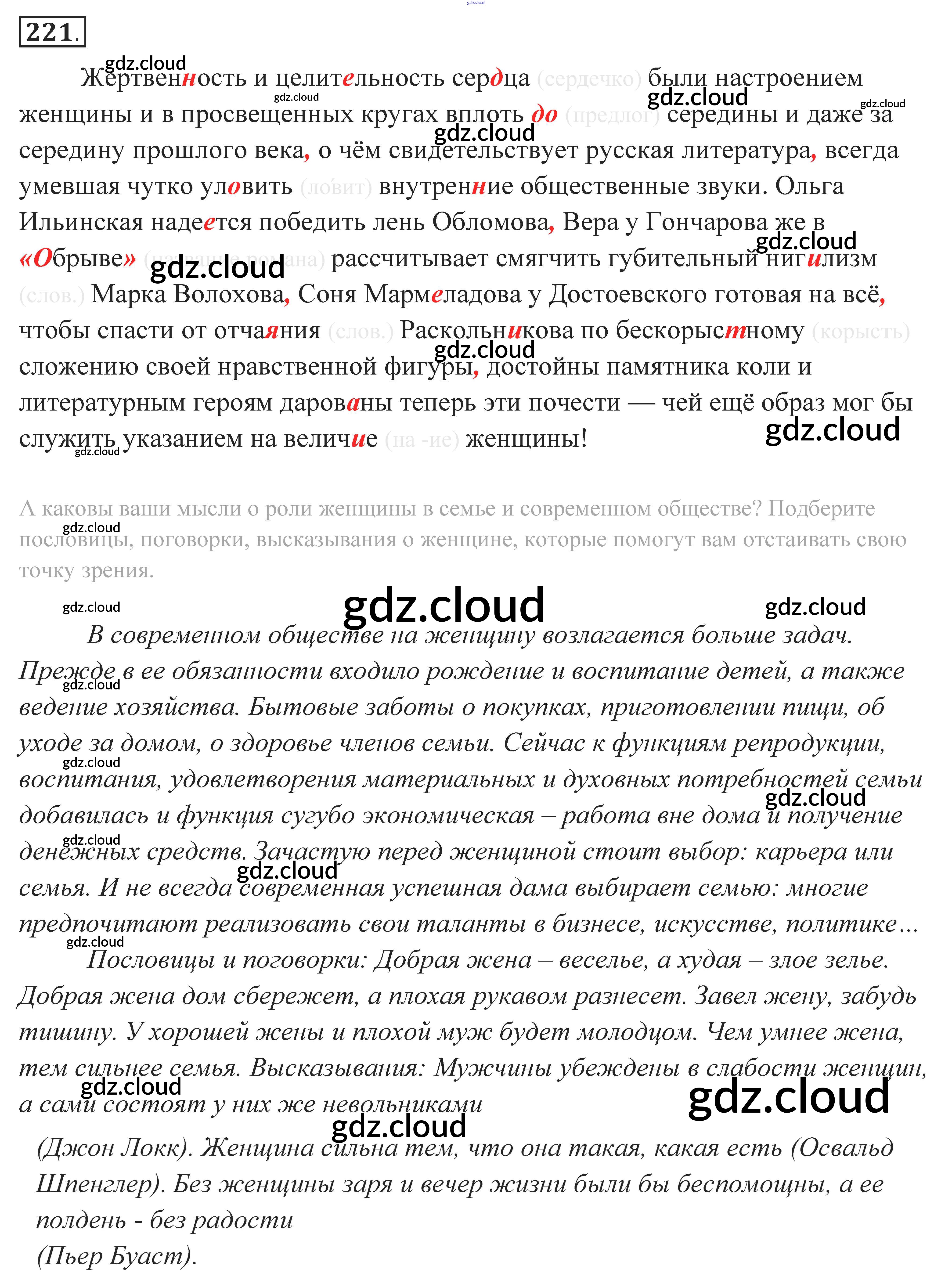 Ответ на задание 221 Учебник Русский язык за 10, 11 (десятый, одиннадцатый) класс Власенков, Рыбченкова Базовый уровень 2014