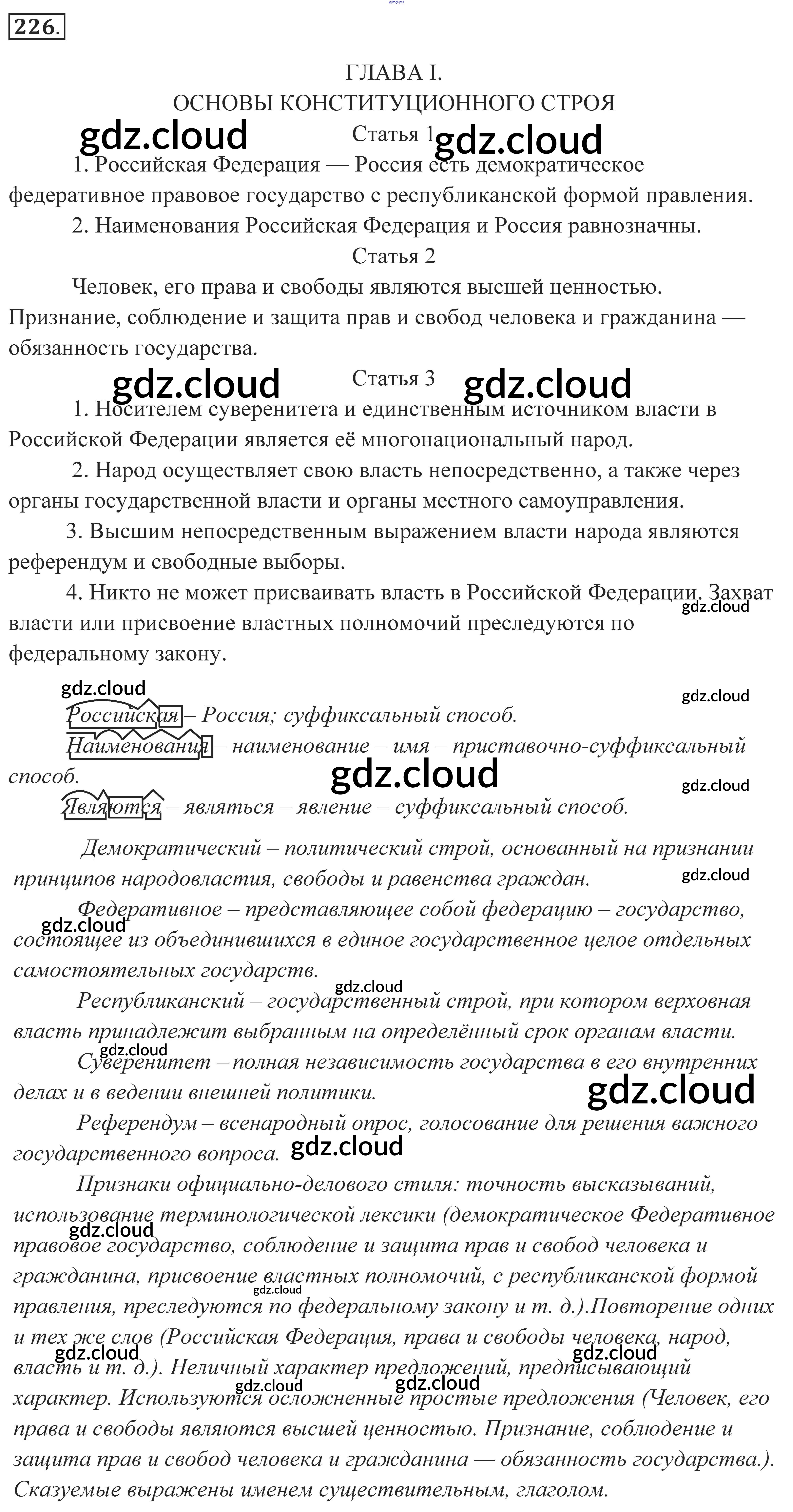 Ответ на задание 226 Учебник Русский язык за 10, 11 (десятый, одиннадцатый) класс Власенков, Рыбченкова Базовый уровень 2014