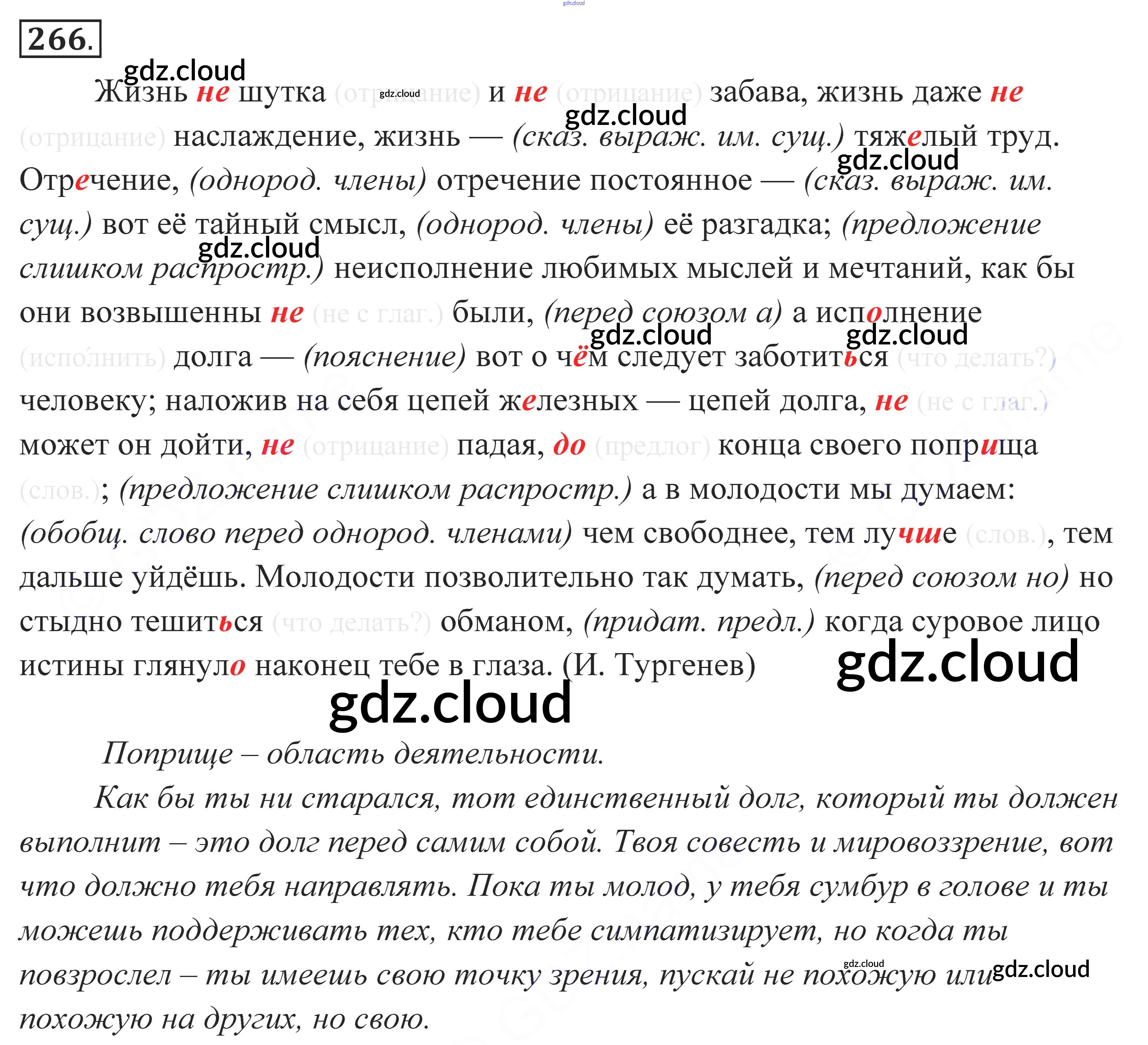 Ответ на задание 266 Учебник Русский язык за 10, 11 (десятый, одиннадцатый) класс Власенков, Рыбченкова Базовый уровень 2014