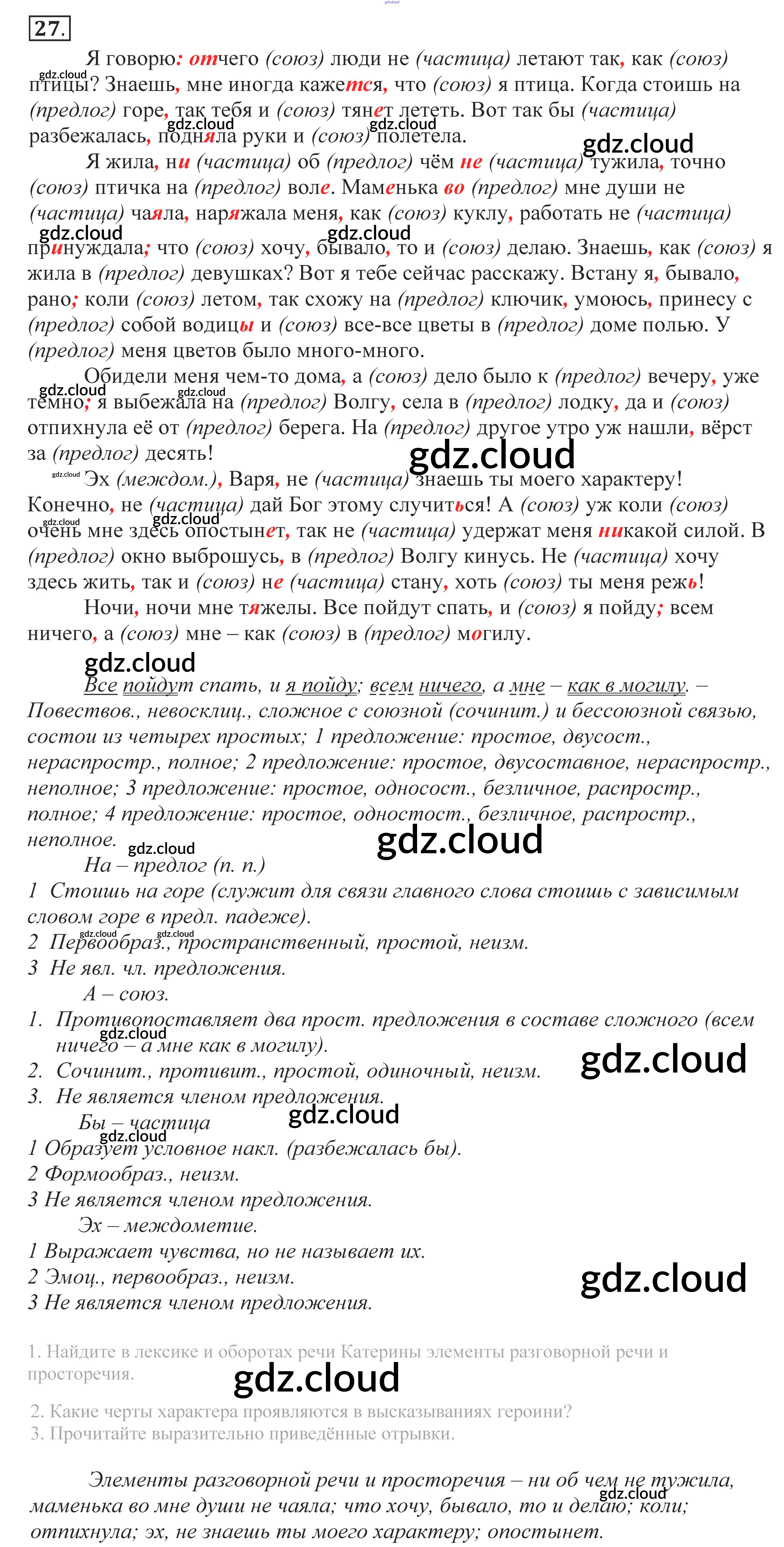 Ответ на задание 27 Учебник Русский язык за 10, 11 (десятый, одиннадцатый) класс Власенков, Рыбченкова Базовый уровень 2014