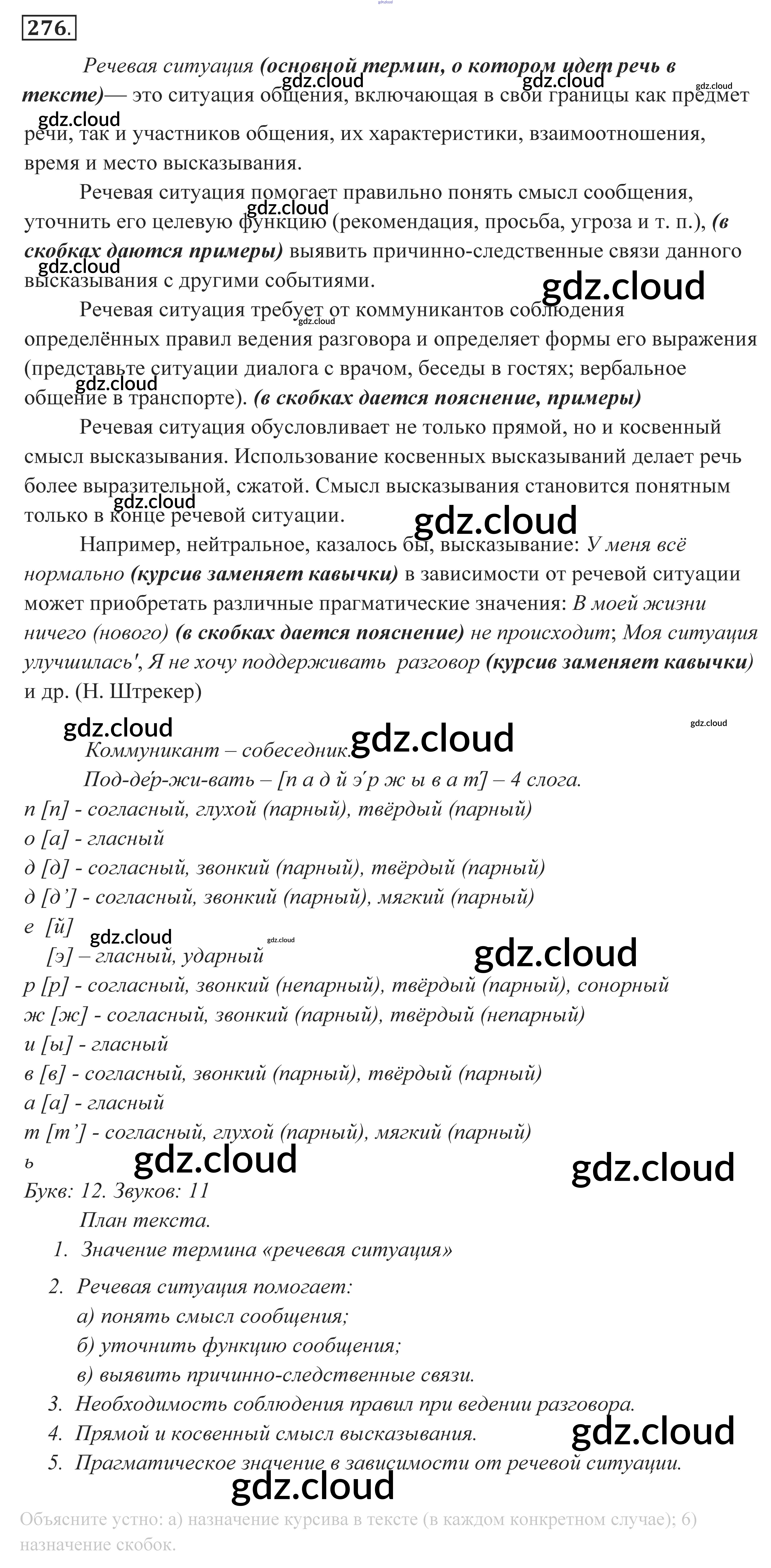 Ответ на задание 276 Учебник Русский язык за 10, 11 (десятый, одиннадцатый) класс Власенков, Рыбченкова Базовый уровень 2014