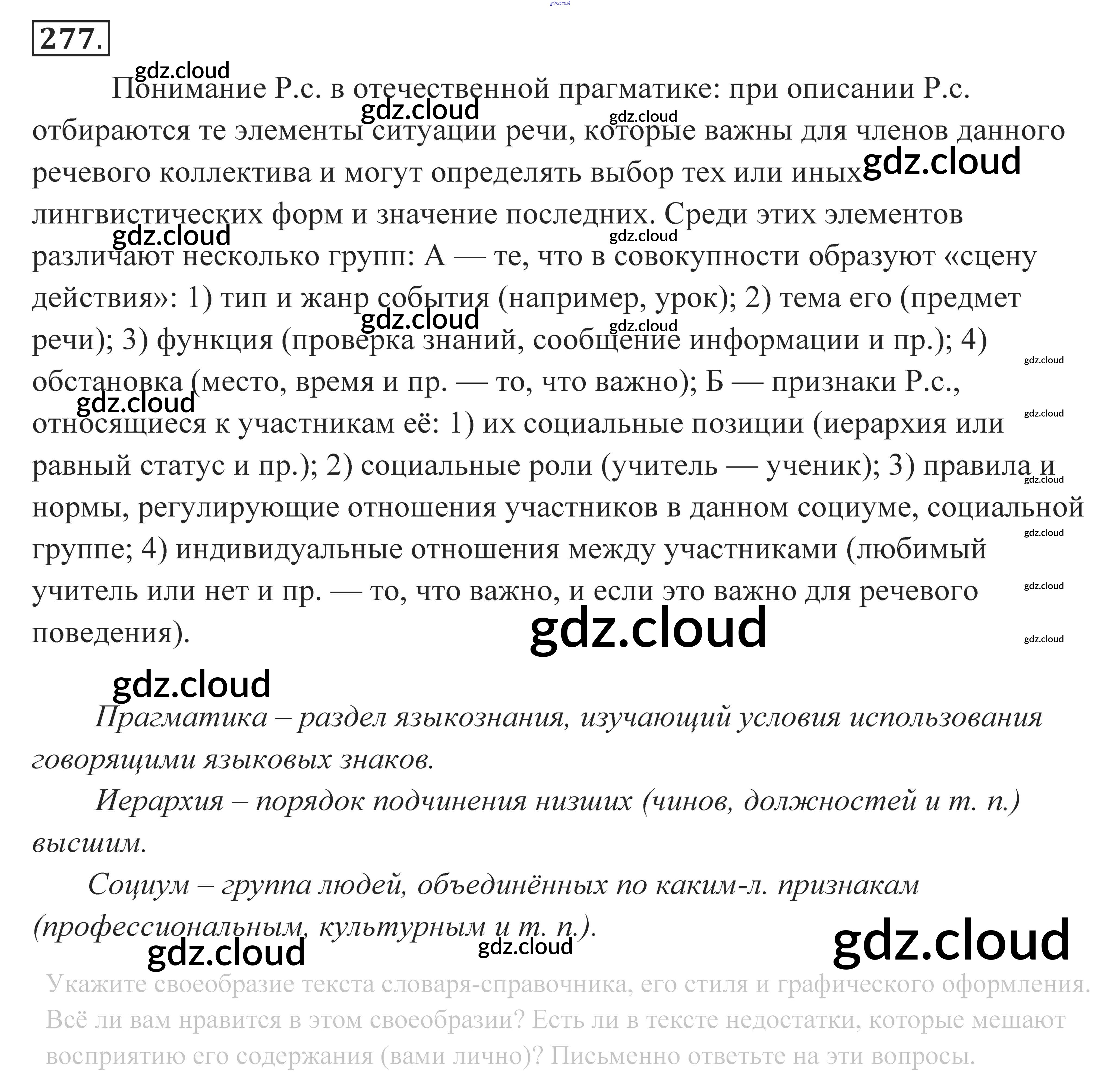 Ответ на задание 277 Учебник Русский язык за 10, 11 (десятый, одиннадцатый) класс Власенков, Рыбченкова Базовый уровень 2014