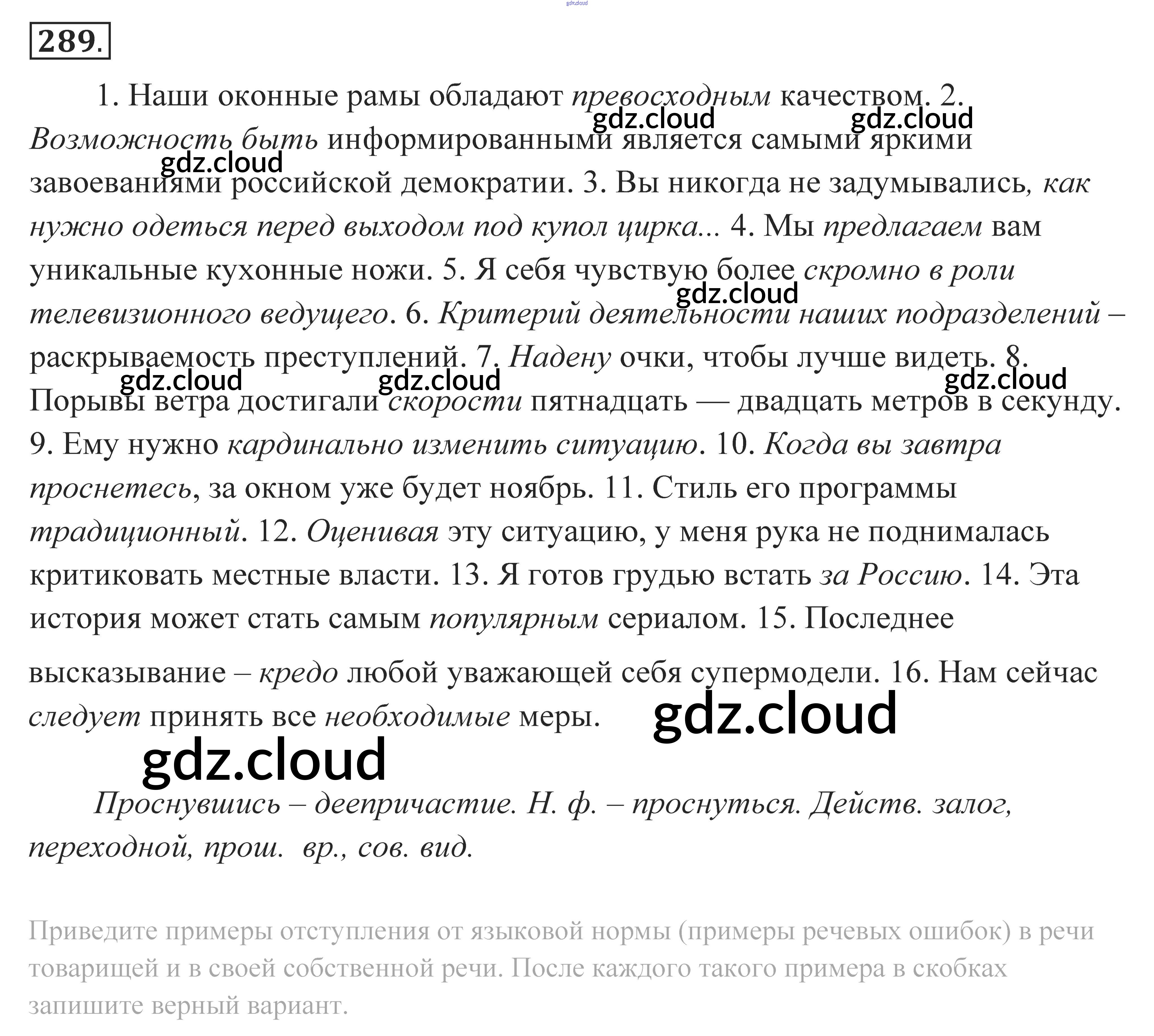 Ответ на задание 289 Учебник Русский язык за 10, 11 (десятый, одиннадцатый) класс Власенков, Рыбченкова Базовый уровень 2014