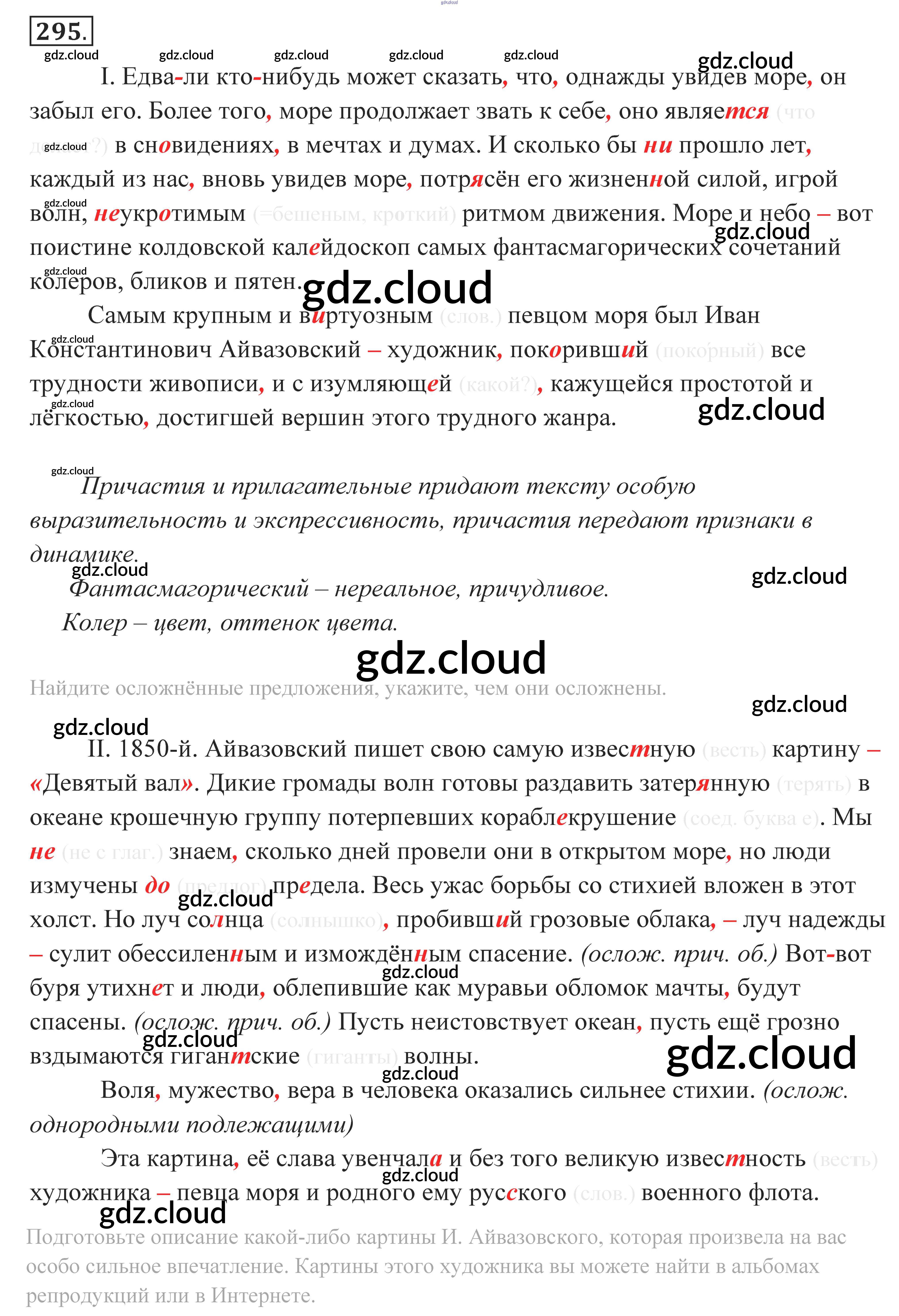 Ответ на задание 295 Учебник Русский язык за 10, 11 (десятый, одиннадцатый) класс Власенков, Рыбченкова Базовый уровень 2014