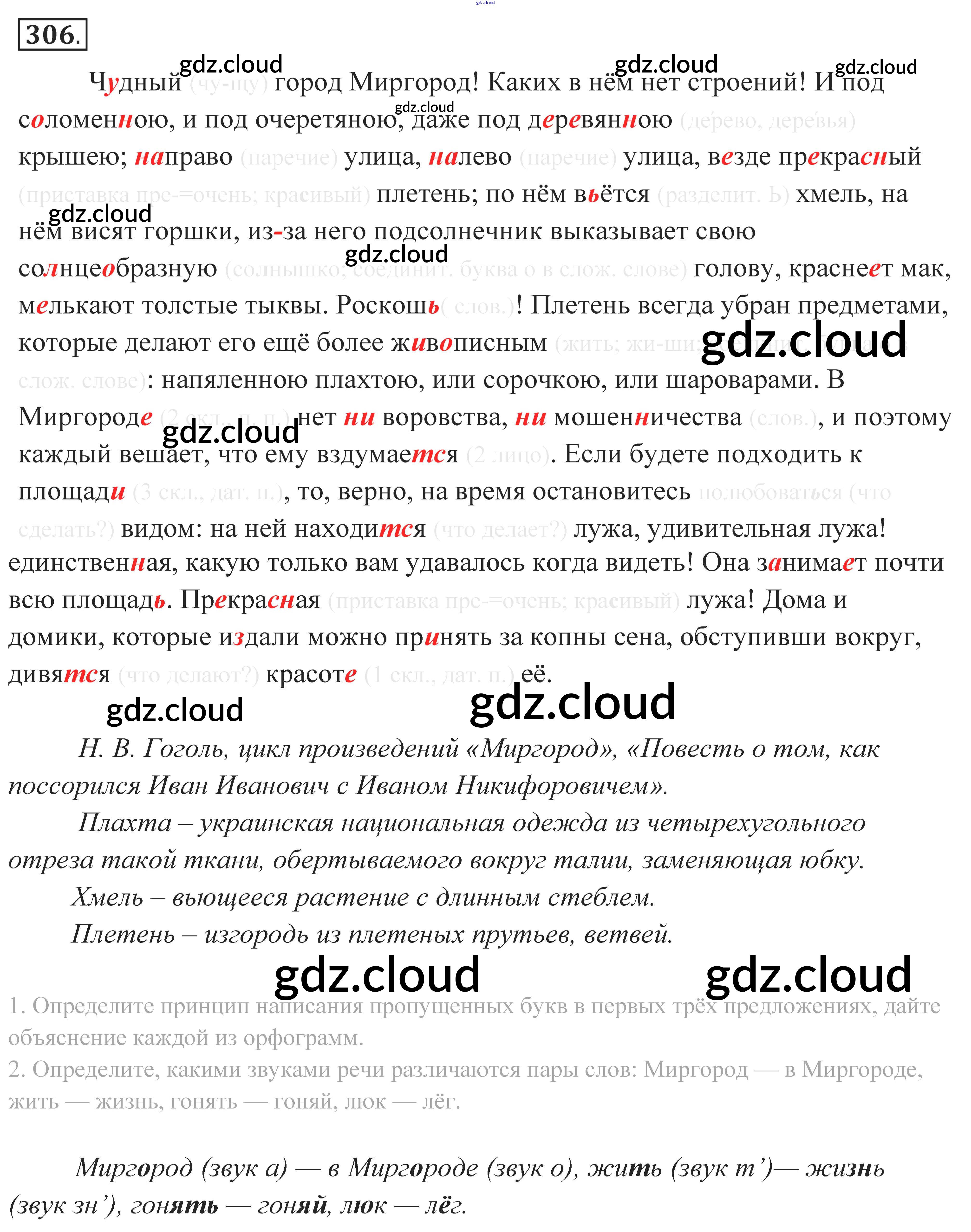Ответ на задание 306 Учебник Русский язык за 10, 11 (десятый, одиннадцатый) класс Власенков, Рыбченкова Базовый уровень 2014