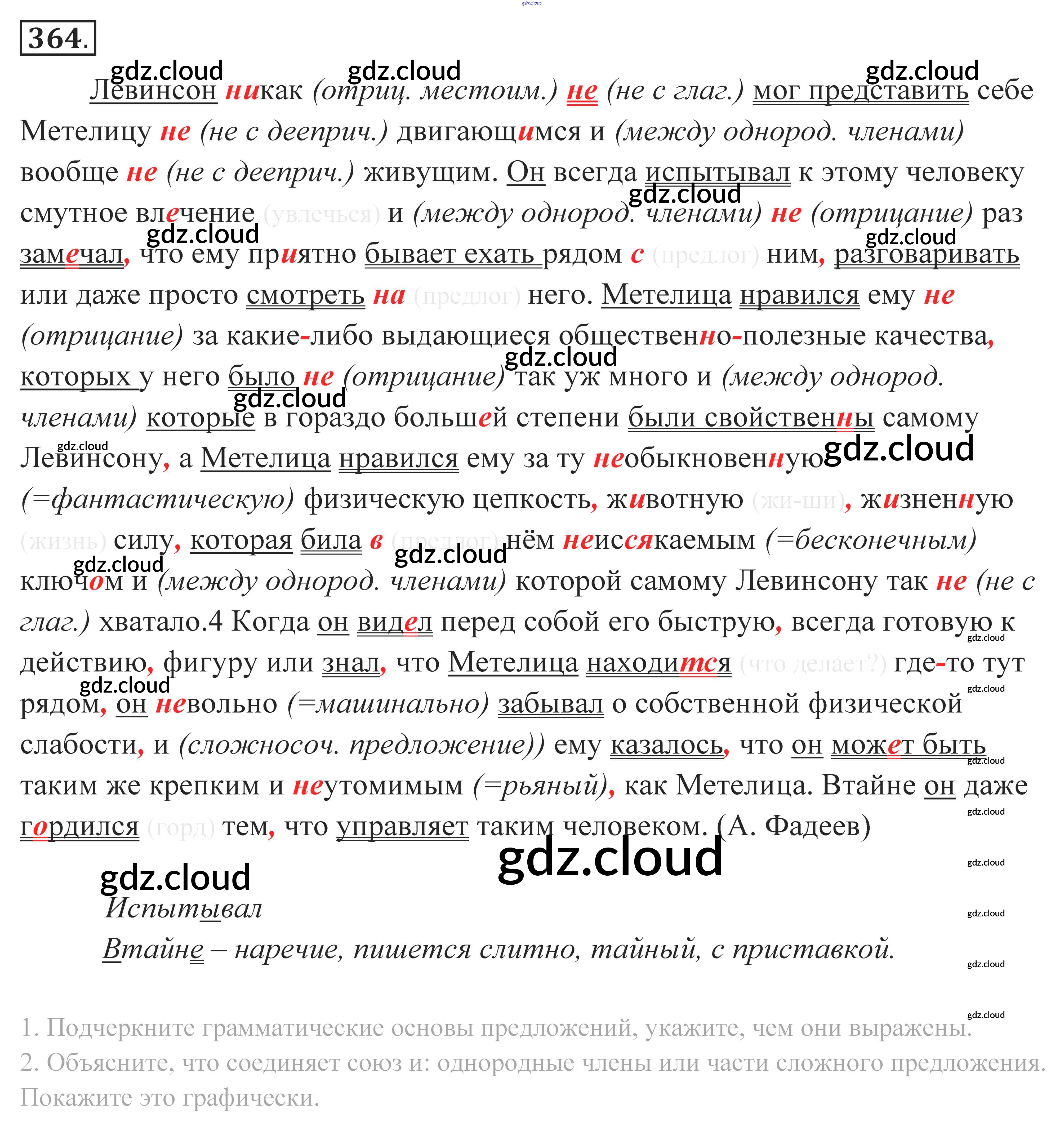 Ответ на задание 364 Учебник Русский язык за 10, 11 (десятый, одиннадцатый) класс Власенков, Рыбченкова Базовый уровень 2014