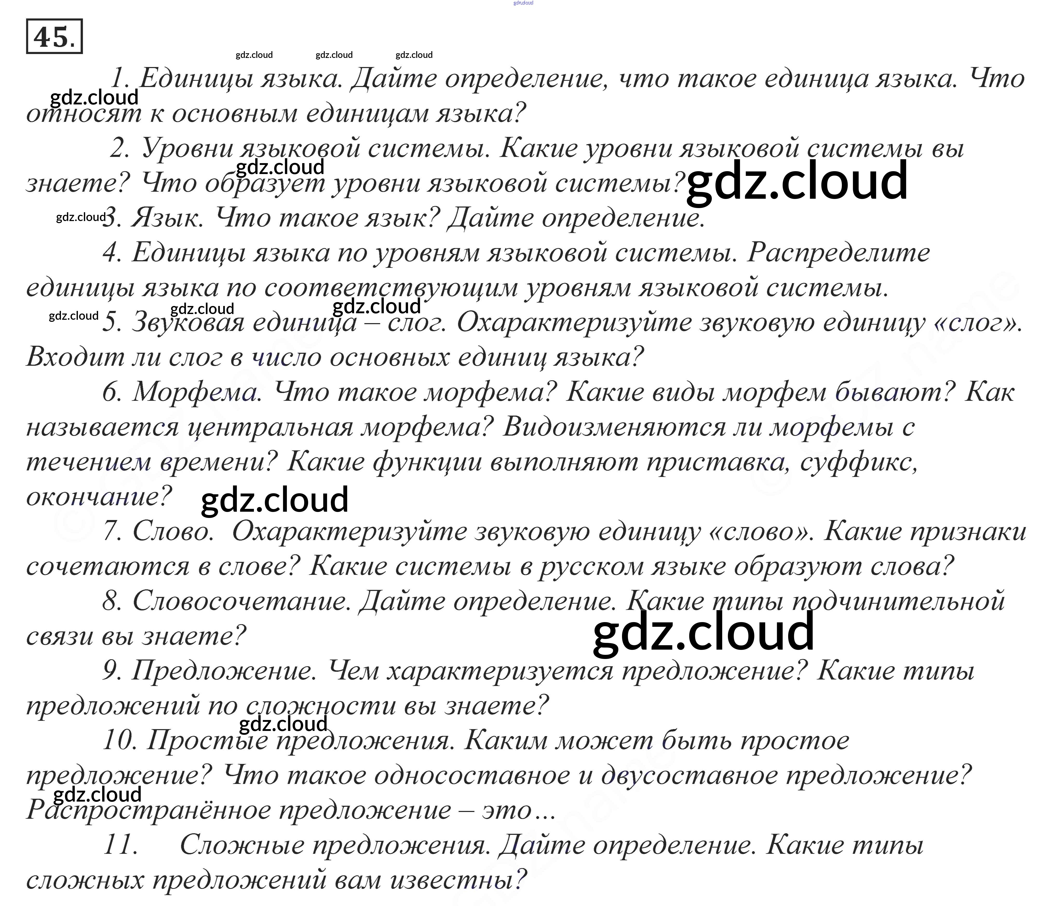 Ответ на задание 45 Учебник Русский язык за 10, 11 (десятый, одиннадцатый) класс Власенков, Рыбченкова Базовый уровень 2014