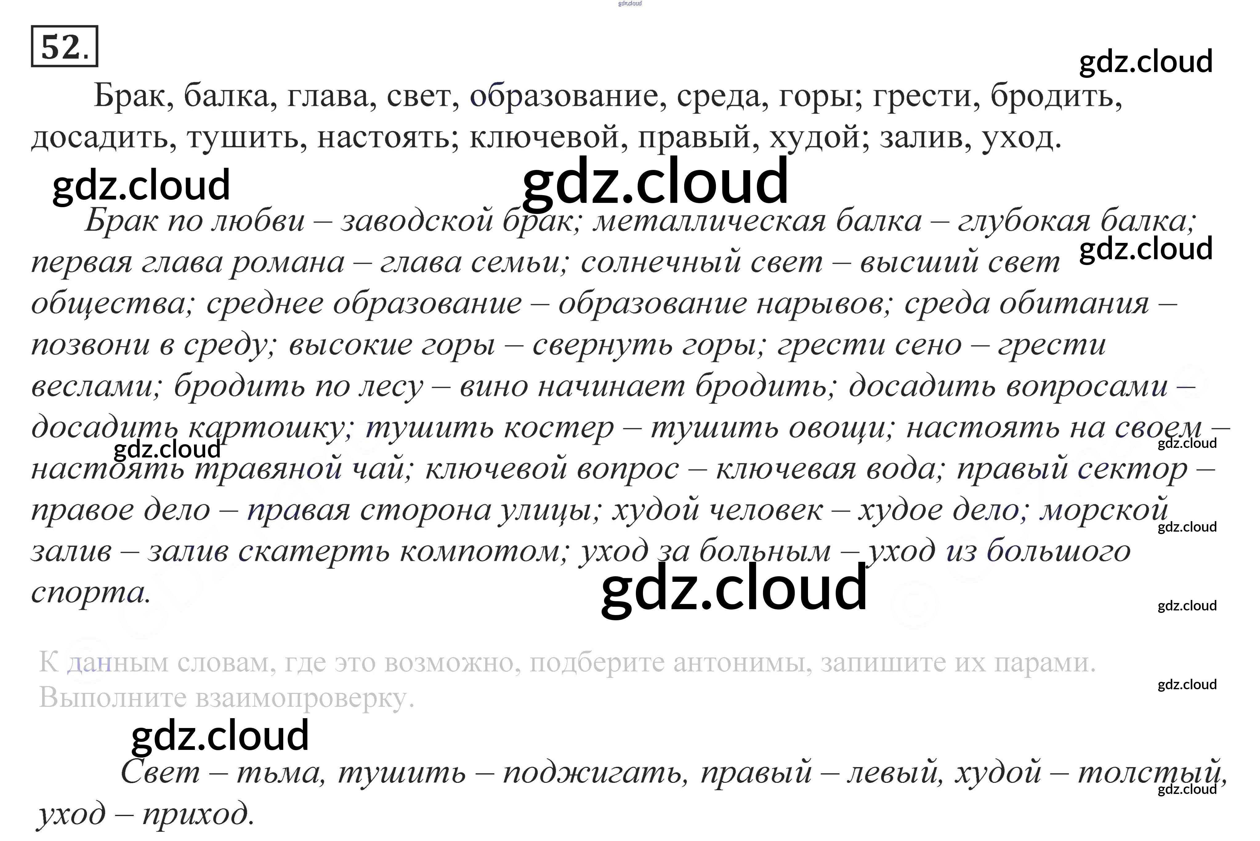 Ответ на задание 52 Учебник Русский язык за 10, 11 (десятый, одиннадцатый) класс Власенков, Рыбченкова Базовый уровень 2014