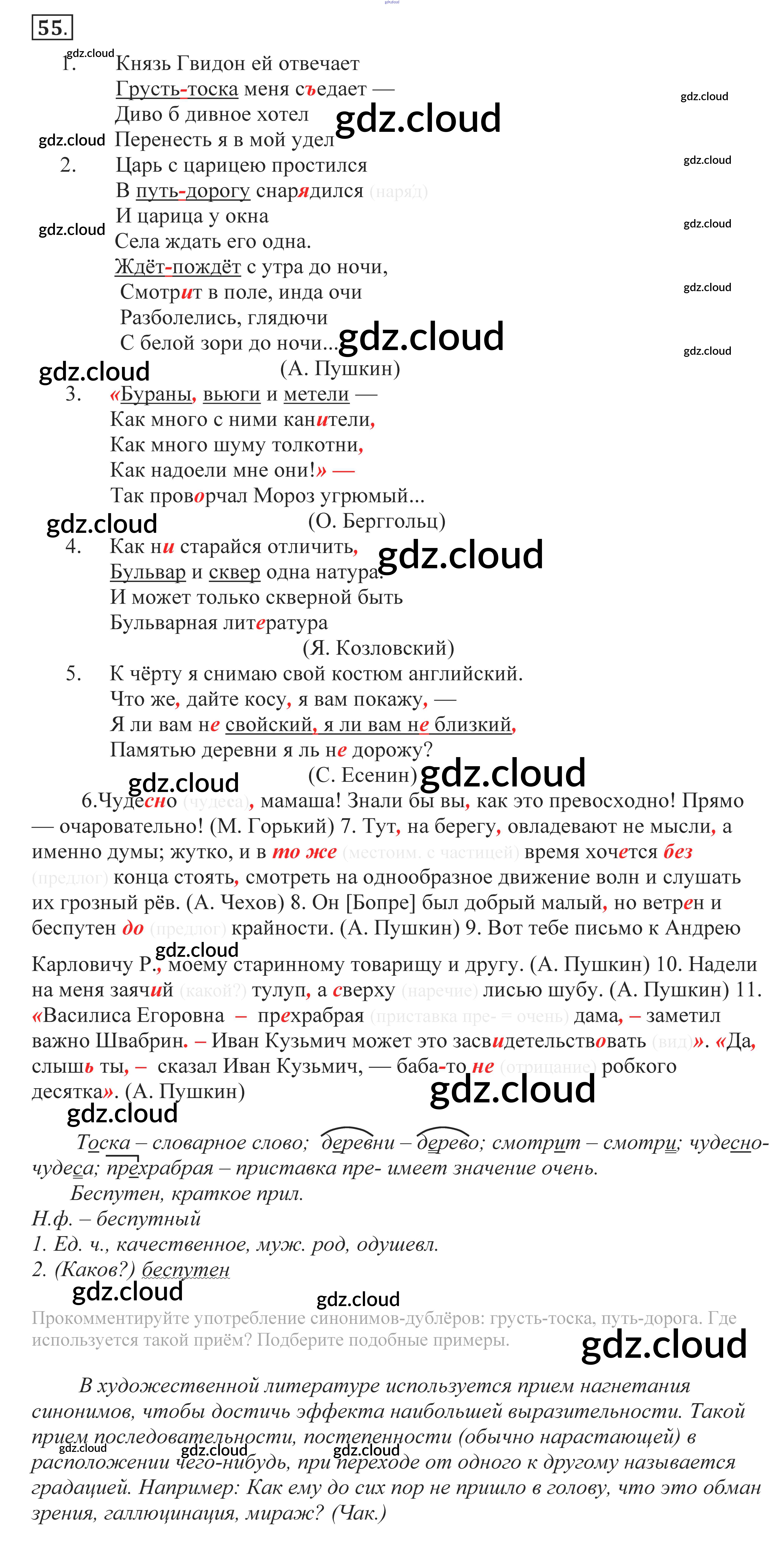 Ответ на задание 55 Учебник Русский язык за 10, 11 (десятый, одиннадцатый) класс Власенков, Рыбченкова Базовый уровень 2014