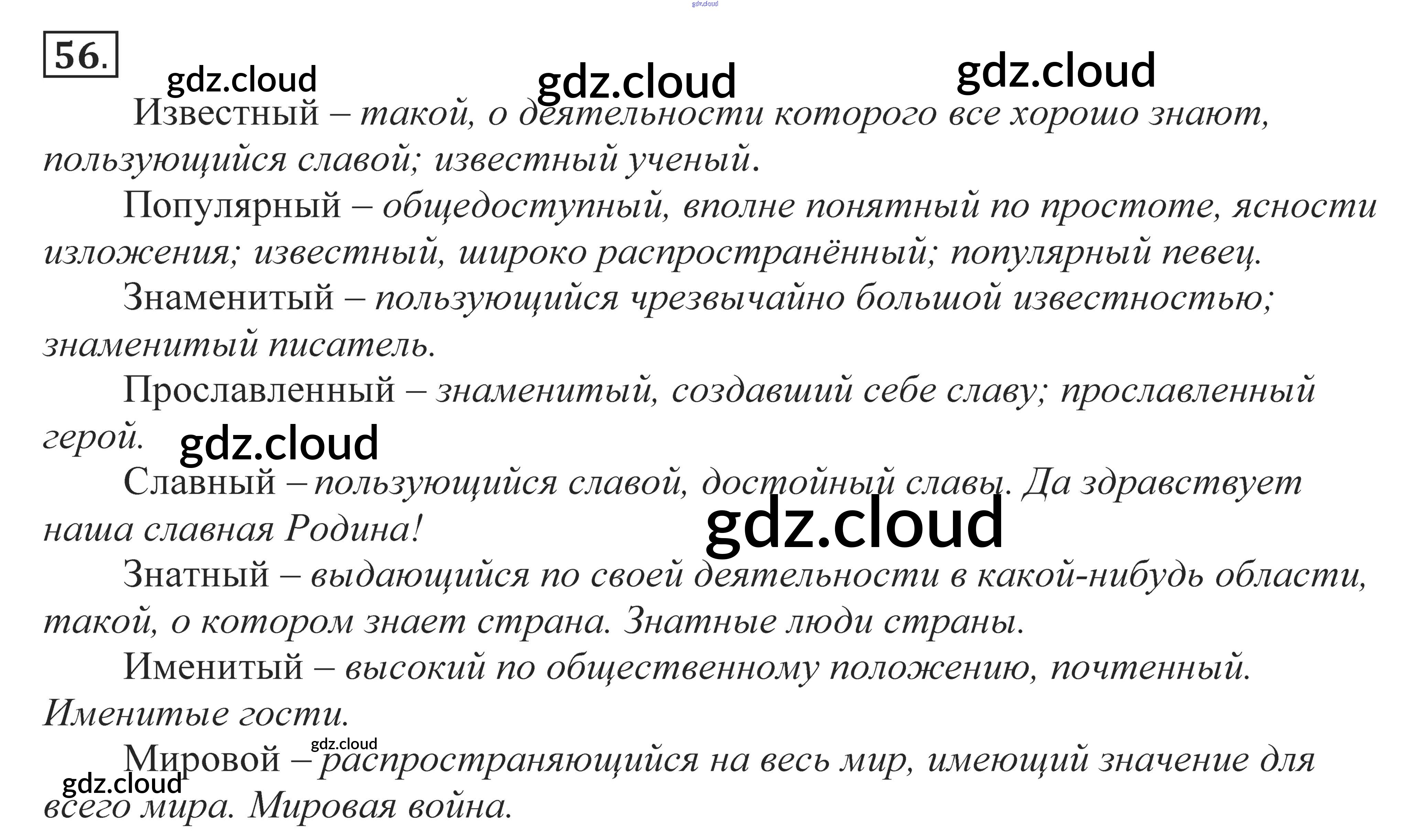 Ответ на задание 56 Учебник Русский язык за 10, 11 (десятый, одиннадцатый) класс Власенков, Рыбченкова Базовый уровень 2014