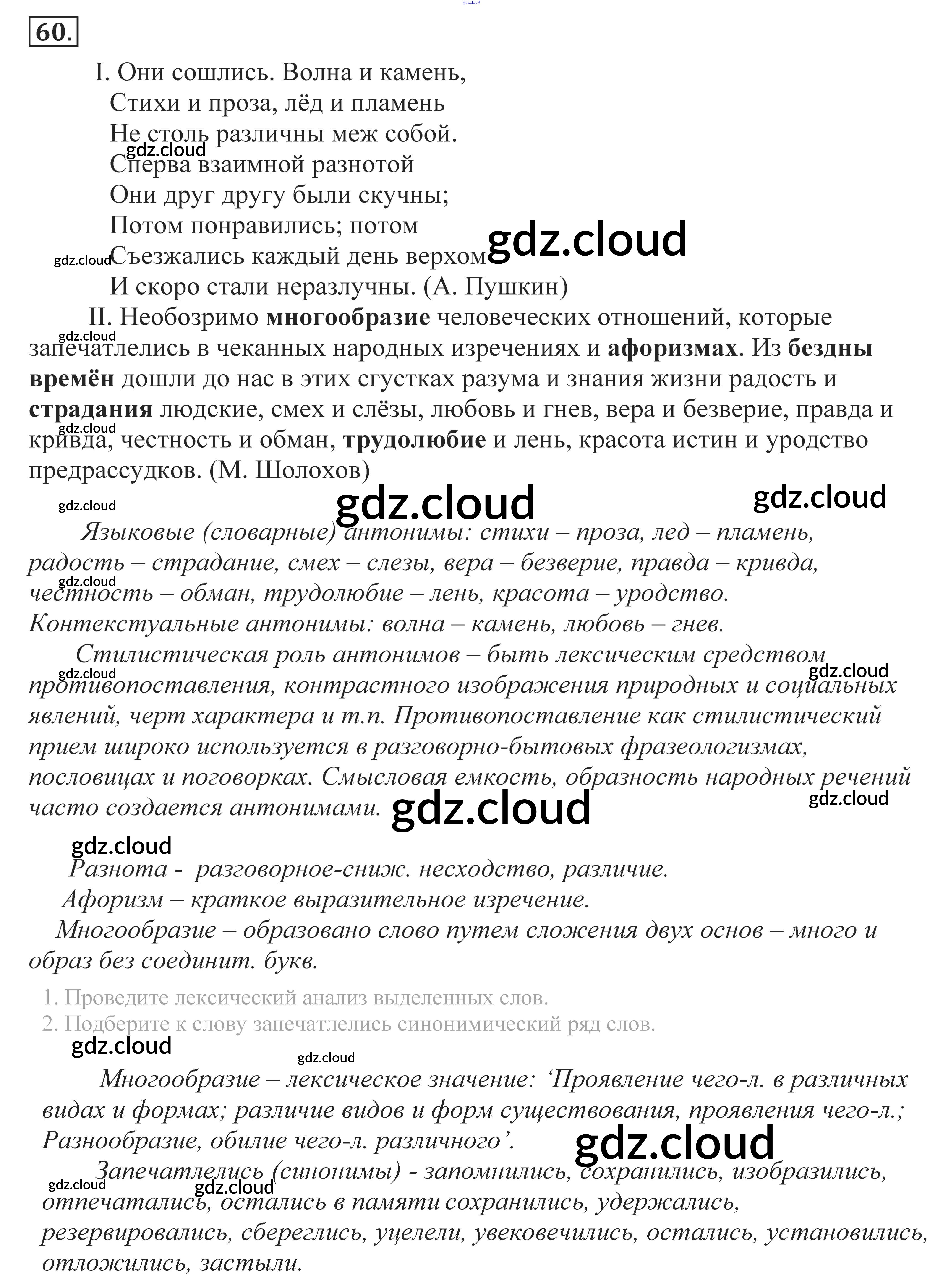 Ответ на задание 60 Учебник Русский язык за 10, 11 (десятый, одиннадцатый) класс Власенков, Рыбченкова Базовый уровень 2014
