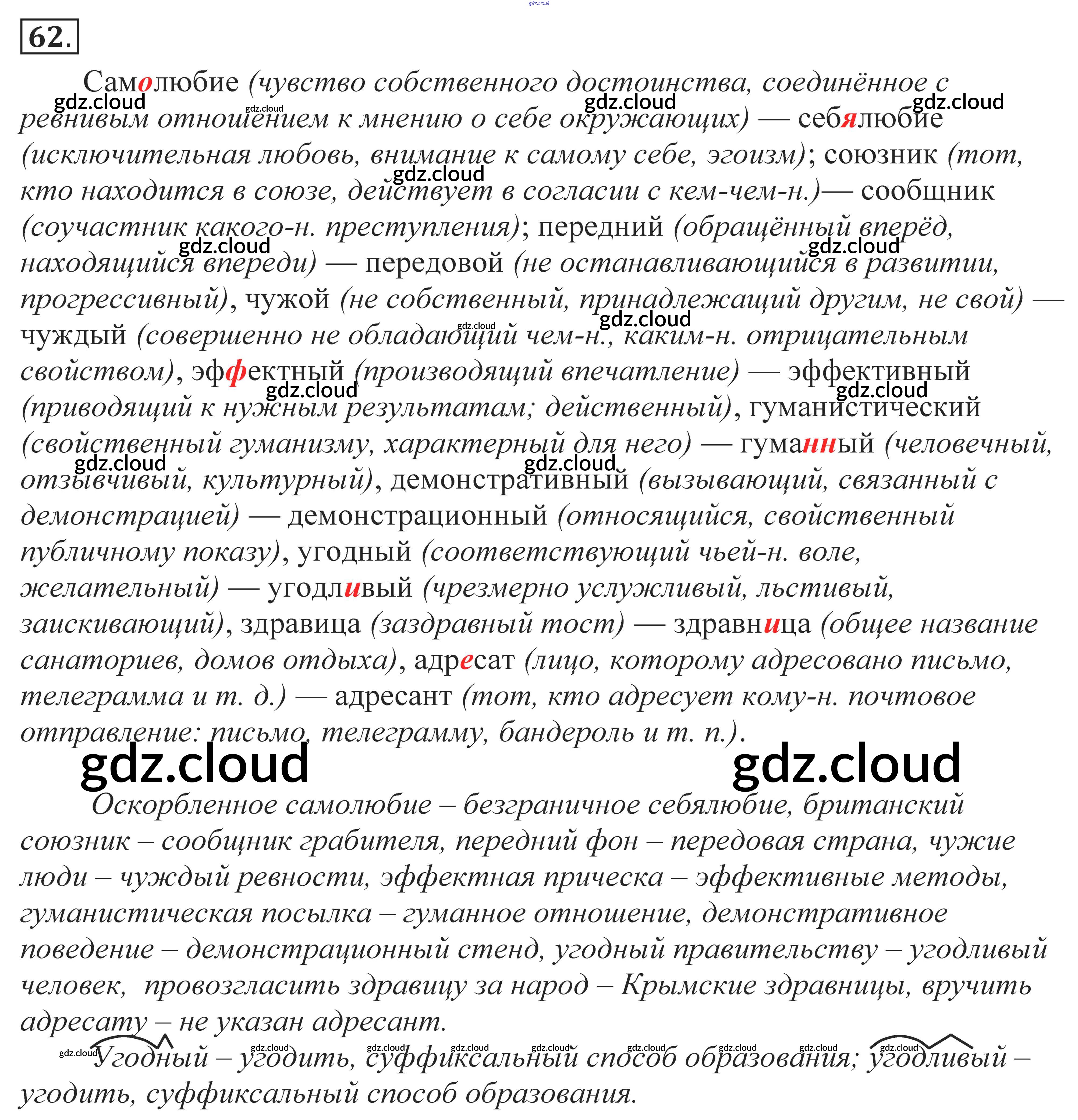 Ответ на задание 62 Учебник Русский язык за 10, 11 (десятый, одиннадцатый) класс Власенков, Рыбченкова Базовый уровень 2014