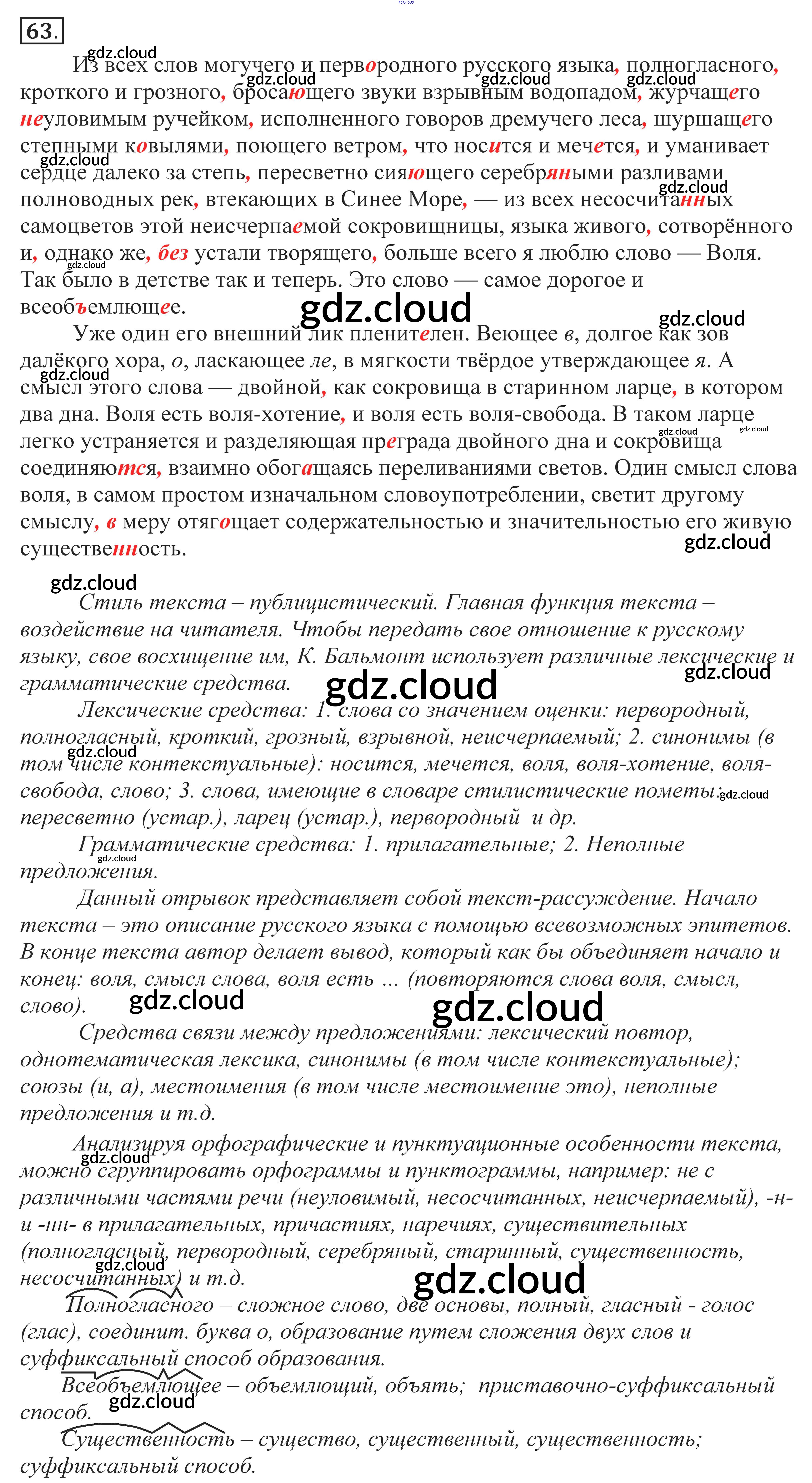 Ответ на задание 63 Учебник Русский язык за 10, 11 (десятый, одиннадцатый) класс Власенков, Рыбченкова Базовый уровень 2014