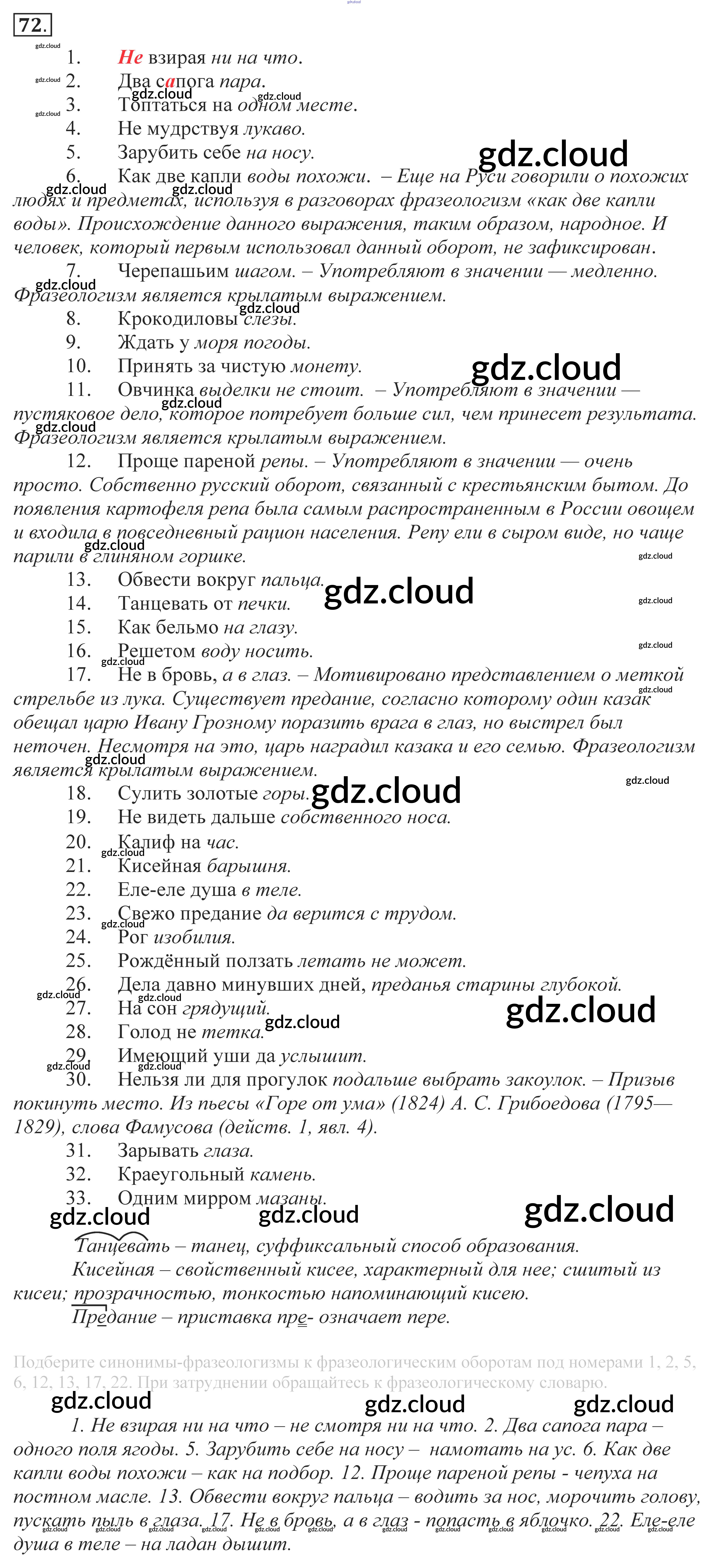 Ответ на задание 72 Учебник Русский язык за 10, 11 (десятый, одиннадцатый) класс Власенков, Рыбченкова Базовый уровень 2014