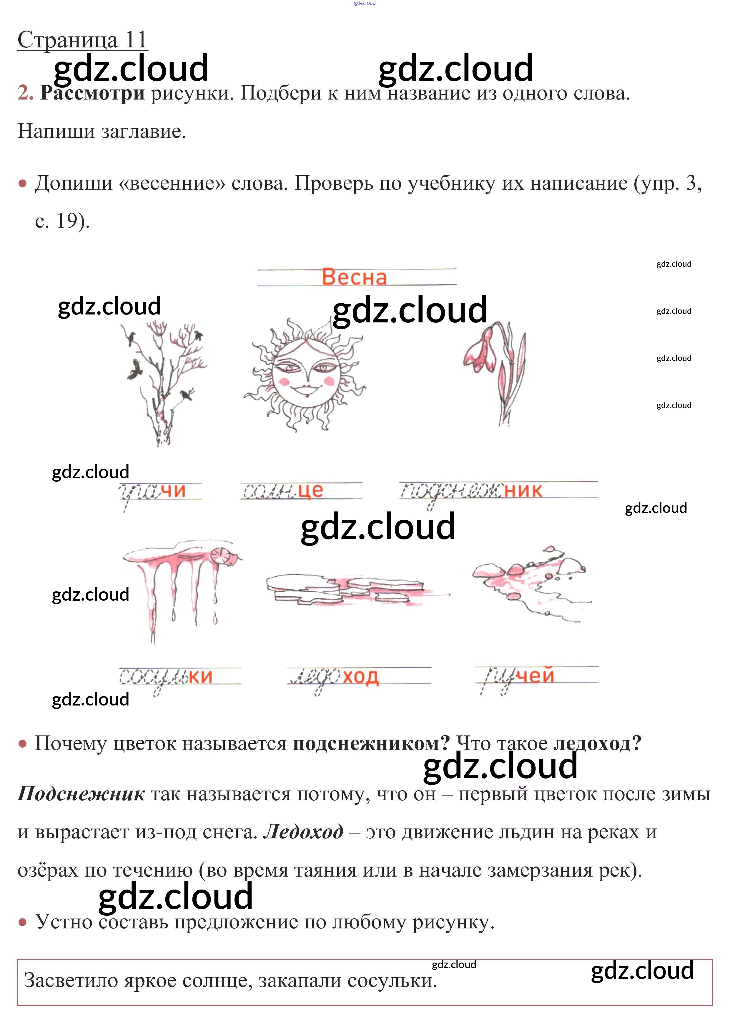 Ответ на задание стр. 11 Рабочая тетрадь Русский язык за 1 (первый) класс Канакина, Горецкий Школа России 2013
