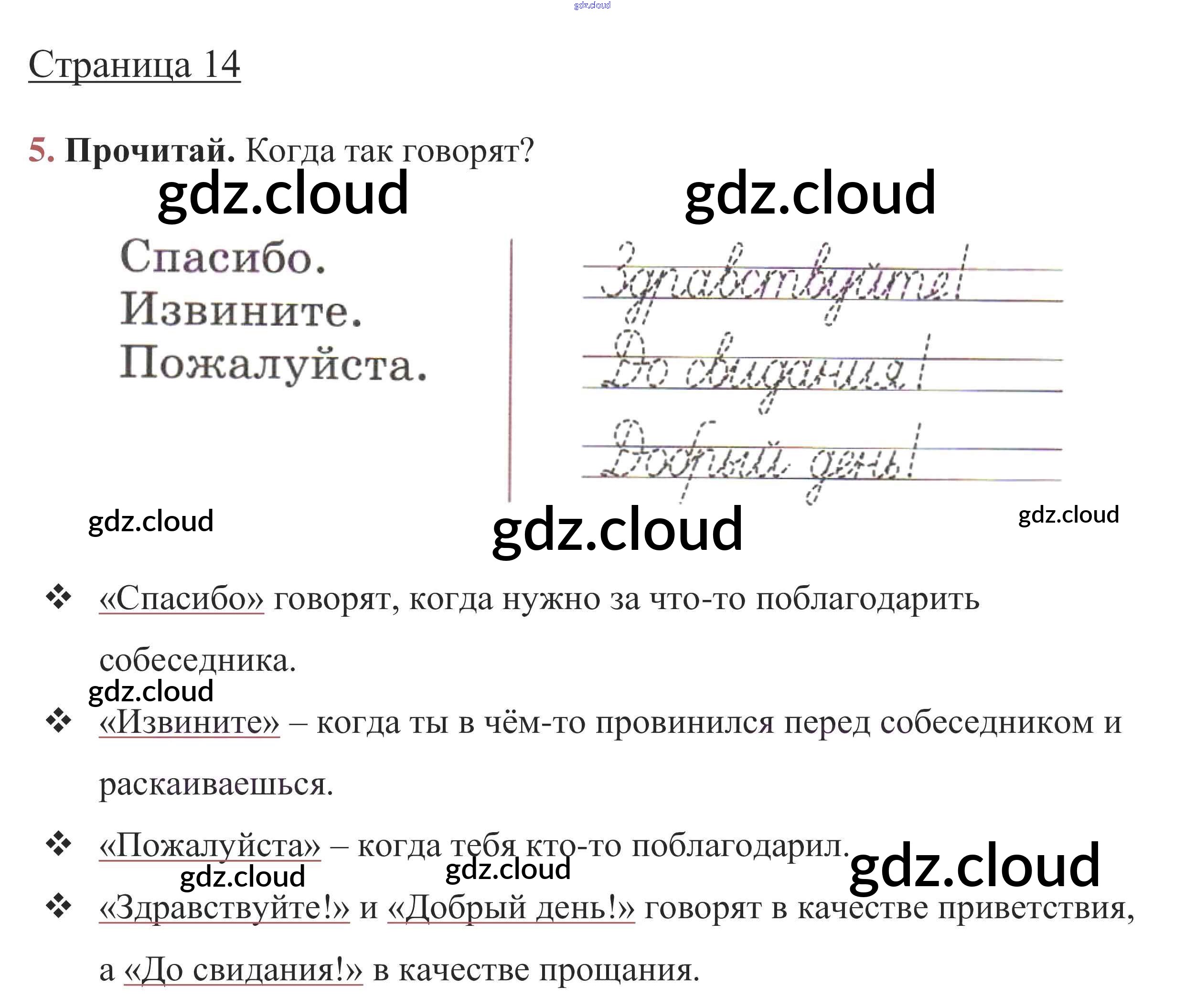 Ответ на задание стр. 14 Рабочая тетрадь Русский язык за 1 (первый) класс Канакина, Горецкий Школа России 2013