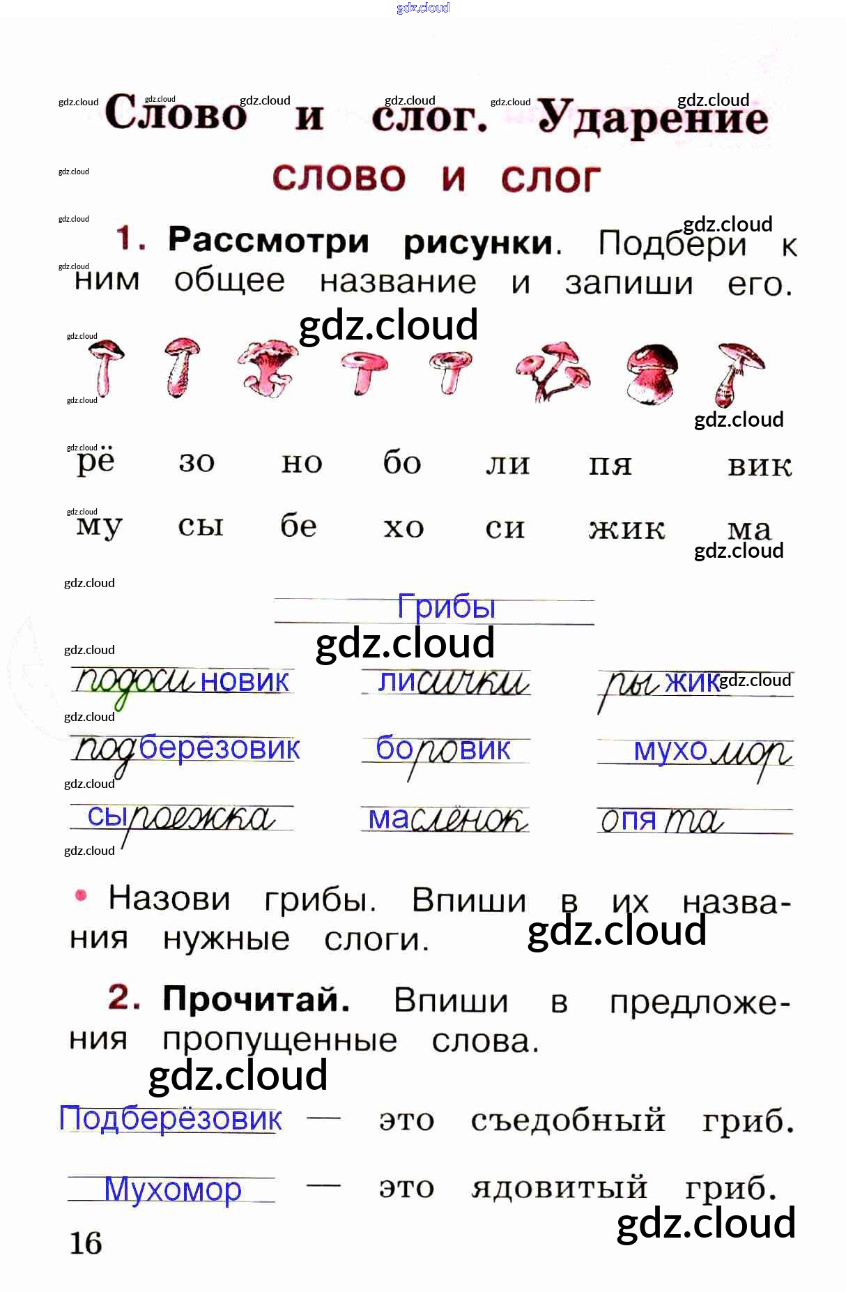 Ответ на задание стр. 16 Рабочая тетрадь Русский язык за 1 (первый) класс Канакина, Горецкий Школа России 2013